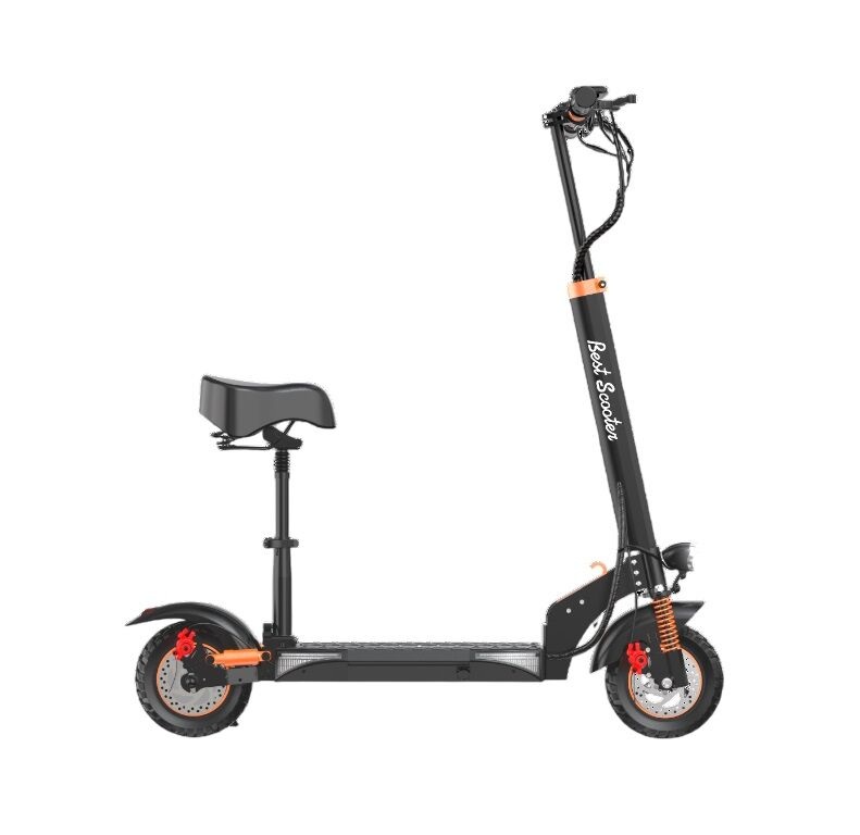 Електросамокат Best Scooter MS-84116 двигун 800W, акумулятор літієвий 48V 17.5Ah з сидінням, складний, колеса 10, чорно-помаранчевий