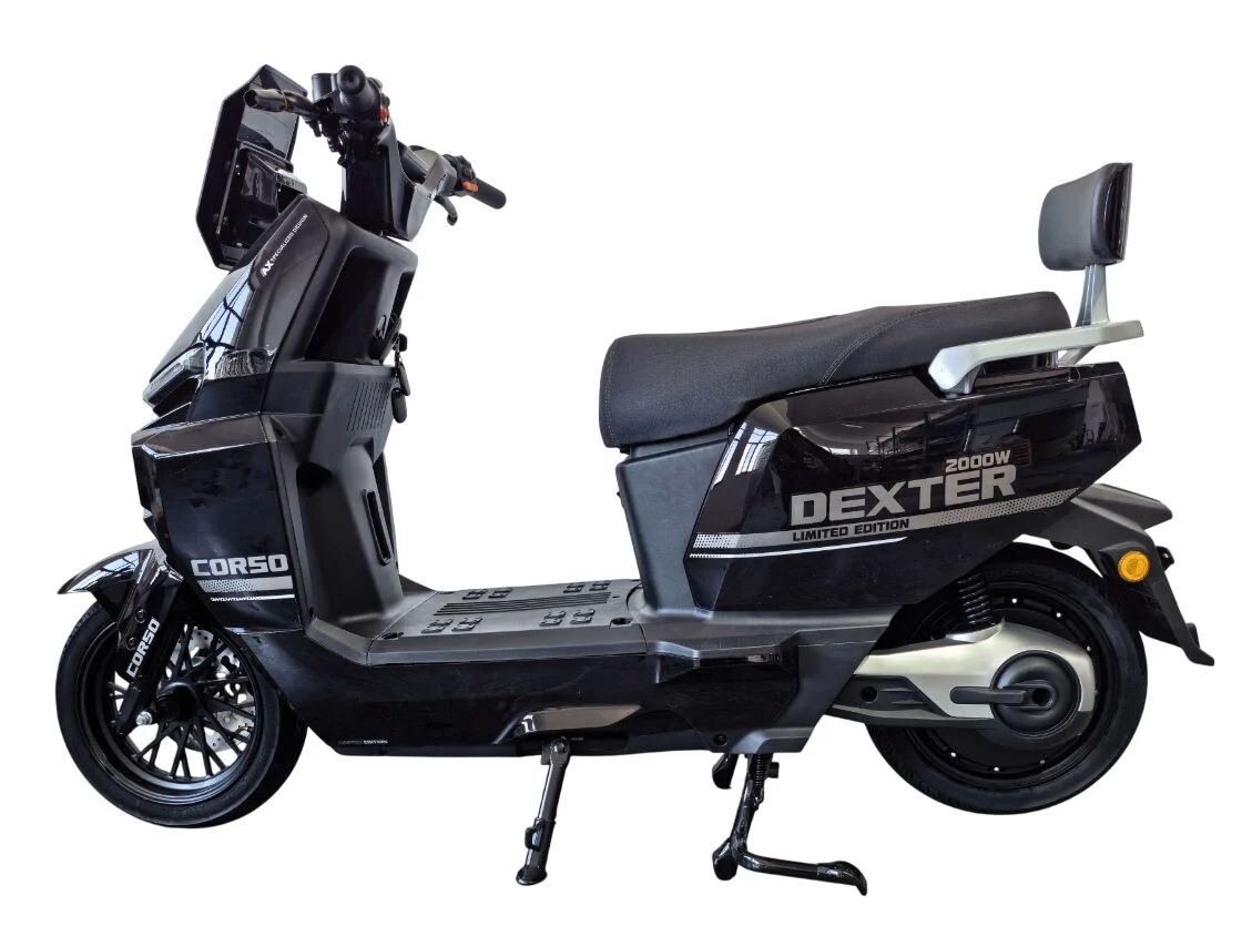 Електроскутер Corso «DEXTER» DX-700698, двигун 2000W, акумулятор 72V 35Ah графеновий, чорний, колеса 12" + 1 ящик. акум