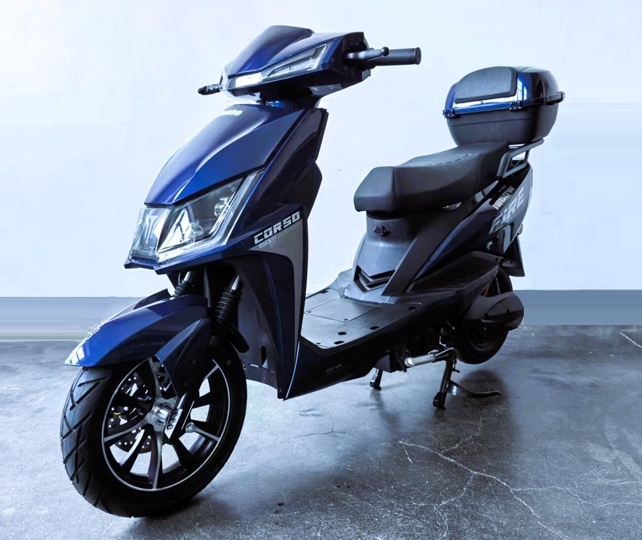 Електроскутер Corso «FIRE» FR-182964, двигун 1800W, акумулятор 72V/32Ah графеновий, синій, колеса 12/10" + 1 ящик. акум