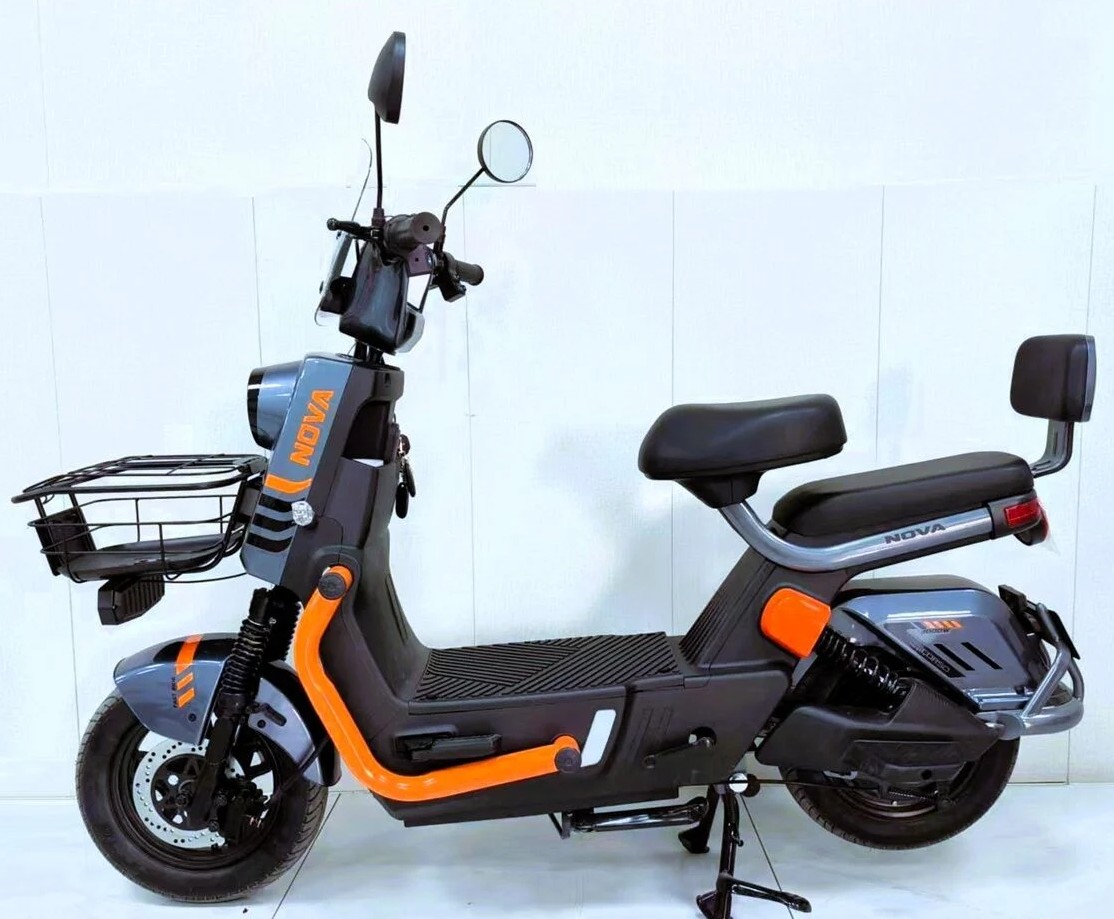 Електроскутер Corso «NOVA» N-870366, двигун 1000W, акумулятор 72V/20Ah графеновий, графітово-помаранчевий, колеса 10" + 1 ящик. акум