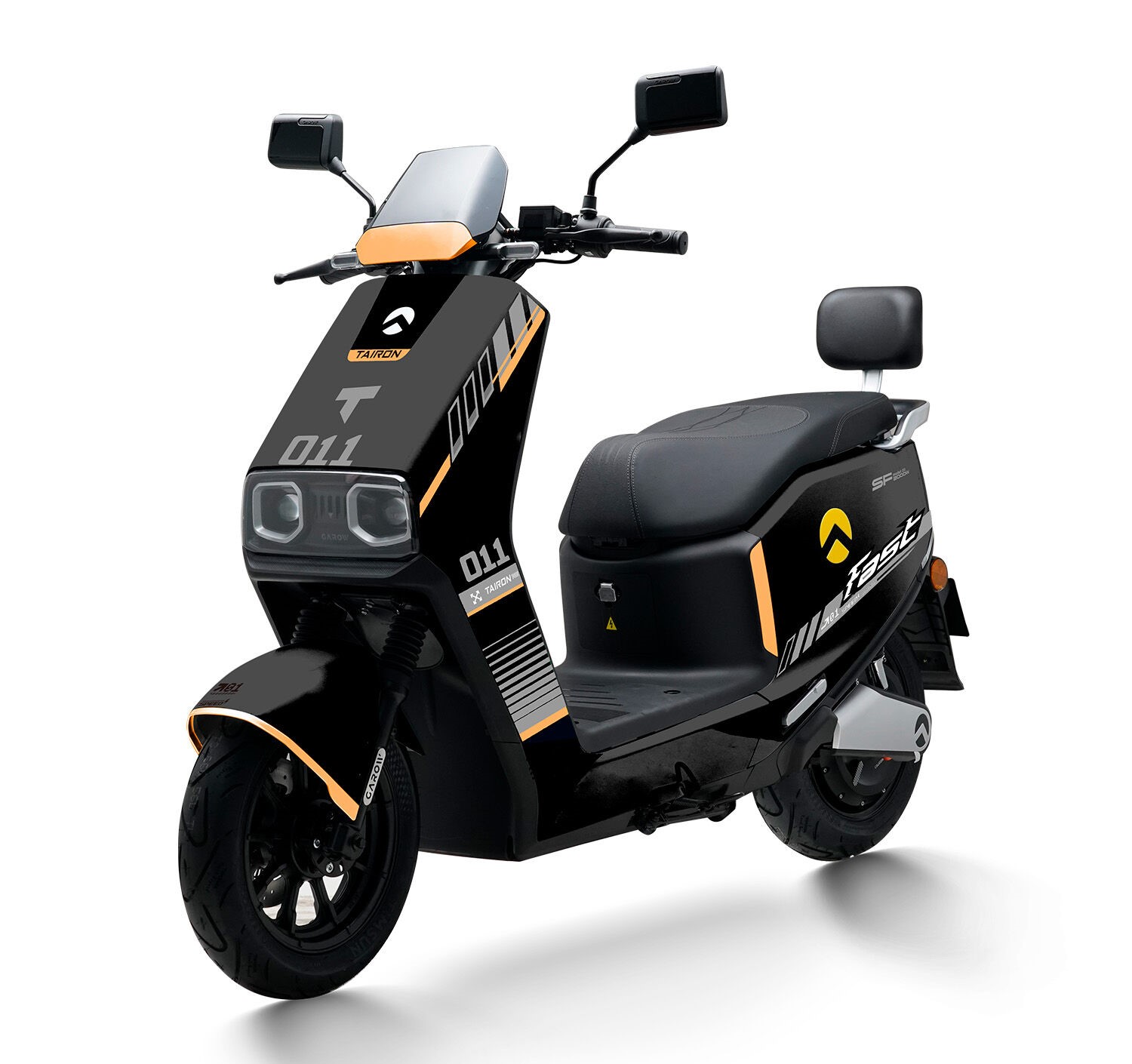 Електроскутер Tairon «FS» 931672, двигун 2000W, акумулятор 72V 48Ah літій-залізо-фосфатний, чорно-помаранчевий, колеса 12/10"