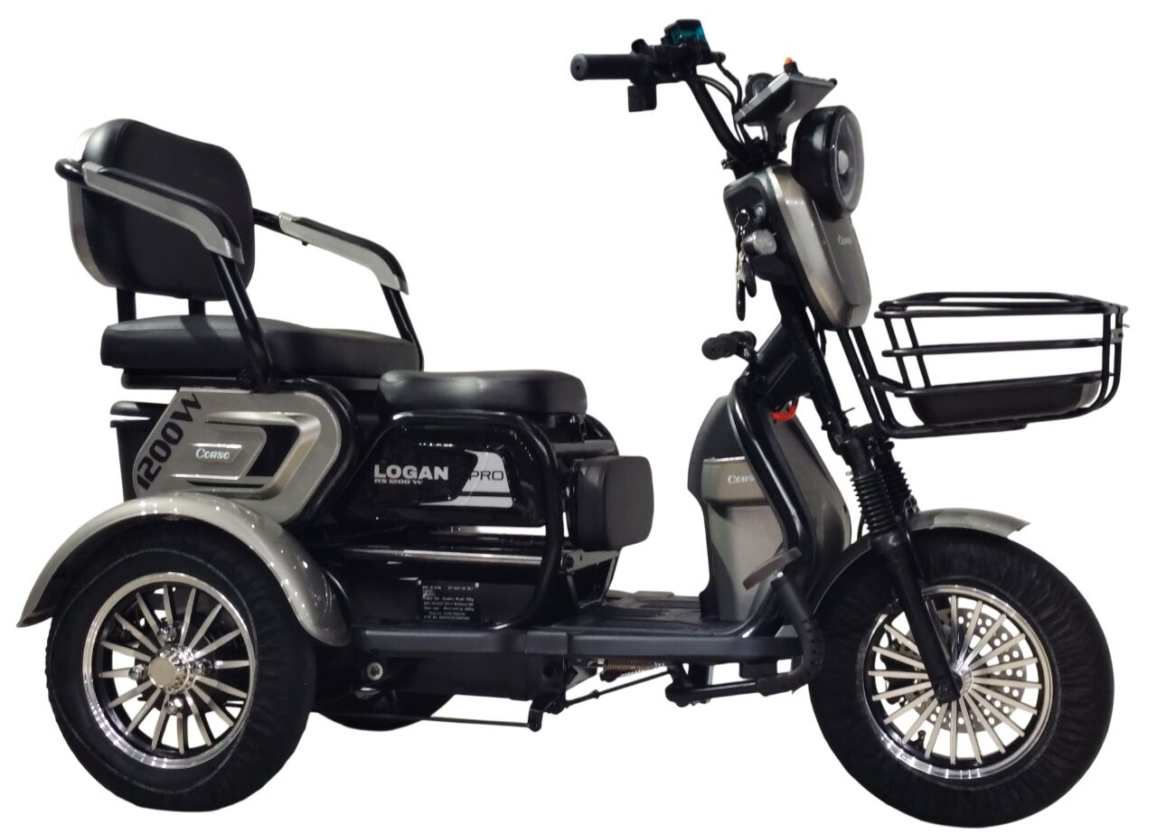 Трицикл Corso «LOGAN PRO» LN-641532, двигун 1200W, акумулятор 72V 28Ah графеновий, сірий + 1 ящик. акум, колеса 10"