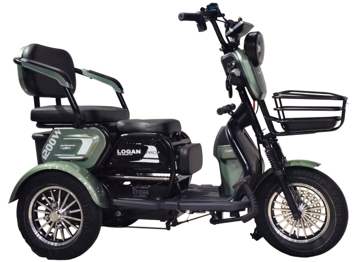 Трицикл Corso «LOGAN PRO» LN-904078, двигун 1200W, акумулятор 72V 28Ah графеновий, зелений + 1 ящик. акум, колеса 10"
