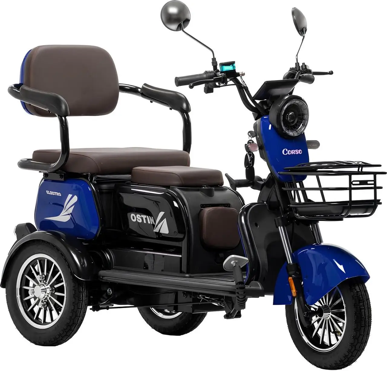 Трицикл Corso «OSTIN» SN-077150, двигун 1000W, акумулятор 72V/23Ah графеновий, синій + 1 ящик. акум, колеса 10"