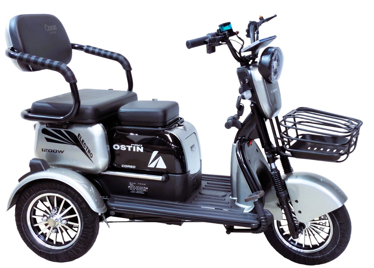 Трицикл Corso «OSTIN PRO» SN-401228, двигун 1200W, акумулятор 72V 28Ah графеновий, сірий + 1 ящик. акум, колеса 10"