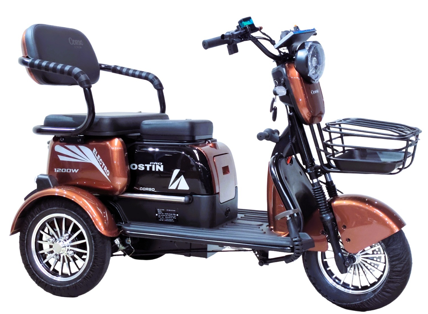 Трицикл Corso «OSTIN PRO» SN-569387, двигун 1200W, акумулятор 72V 28Ah графеновий, коричневий + 1 ящик. акум, колеса 10"