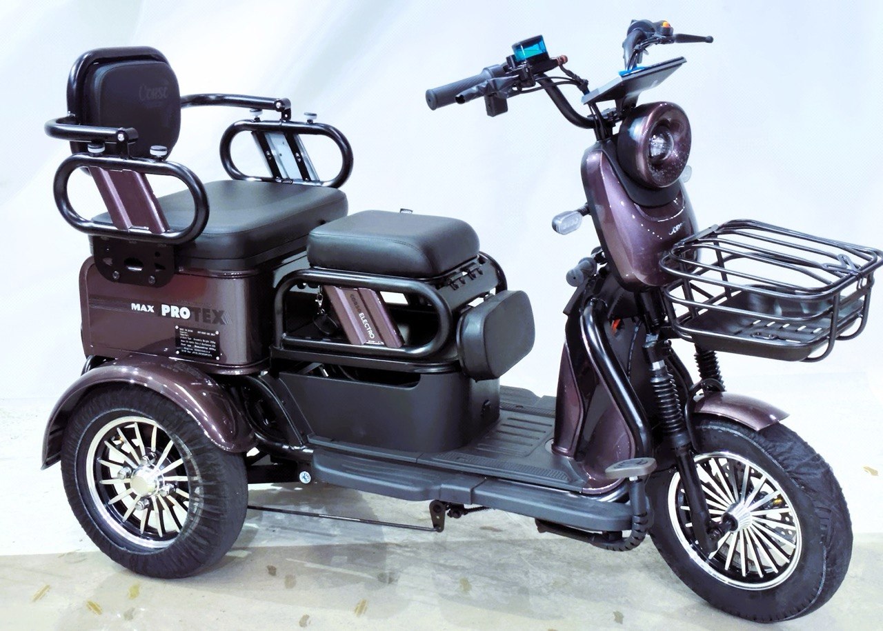 Трицикл Corso «PROTEX MAX» PX-186925, двигун 1200W, акумулятор 72V 28Ah графеновий, коричневий + 1 ящик. акум, колеса 10"