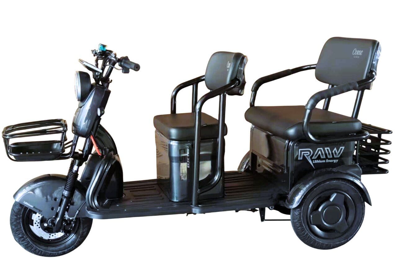 Трицикл Corso «RAW PRO» RL-312190, двигун 1200W, акумулятор 72V 24Ah літій-залізно-фосфатний, графітовий + 1 ящик. акум, колеса 10"