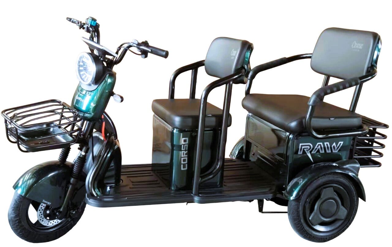 Трицикл Corso «RAW PRO» RL-431602, двигун 1200W, акумулятор 72V 24Ah літій-залізно-фосфатний, зелений + 1 ящик. акум, колеса 10"