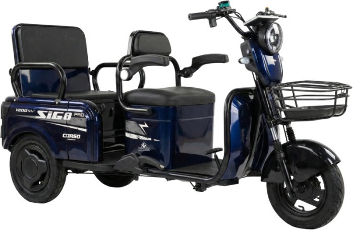 Трицикл Corso «SIG-8 Pro» SP-621176, двигун 1200W, акумулятор 72V 28Ah графеновий, синій + 1 ящик. акум, колеса 10"