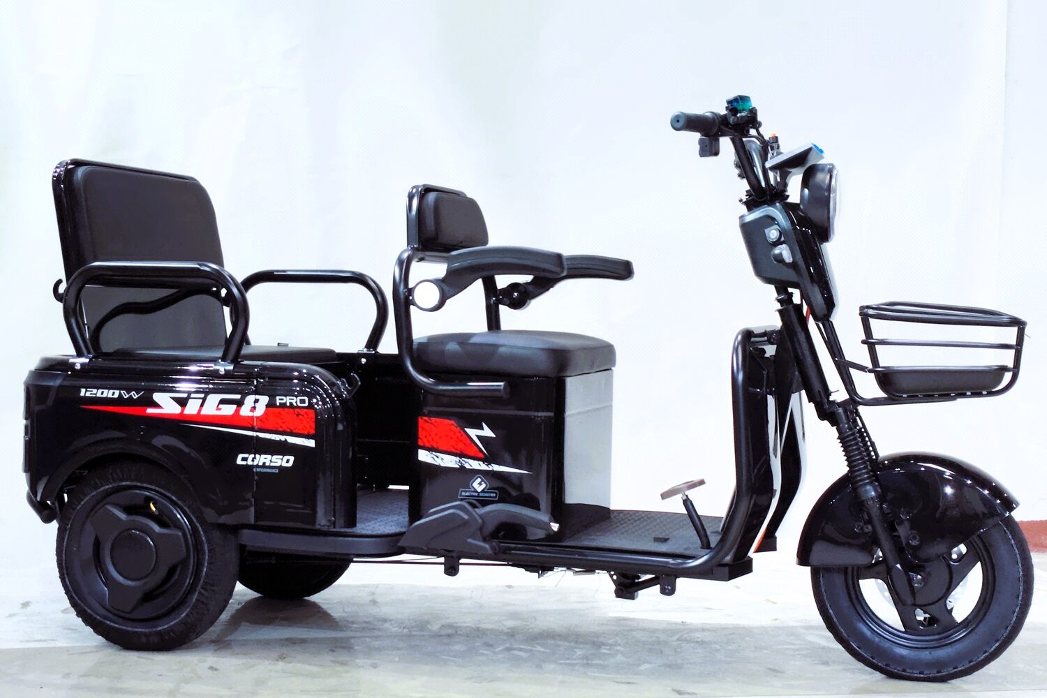 Трицикл Corso «SIG-8 Pro» SP-678933, двигун 1200W, акумулятор 72V/28Ah графеновий, чорний + 1 ящик. акум, колеса 10"