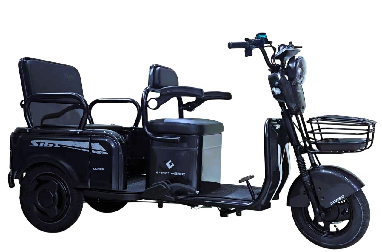 Трицикл Corso «SIG L» SL-080177, двигун 1200W, акумулятор 72V 24Ah літій-залізно-фосфатний, графітовий + 1 ящик. акум, колеса 10"