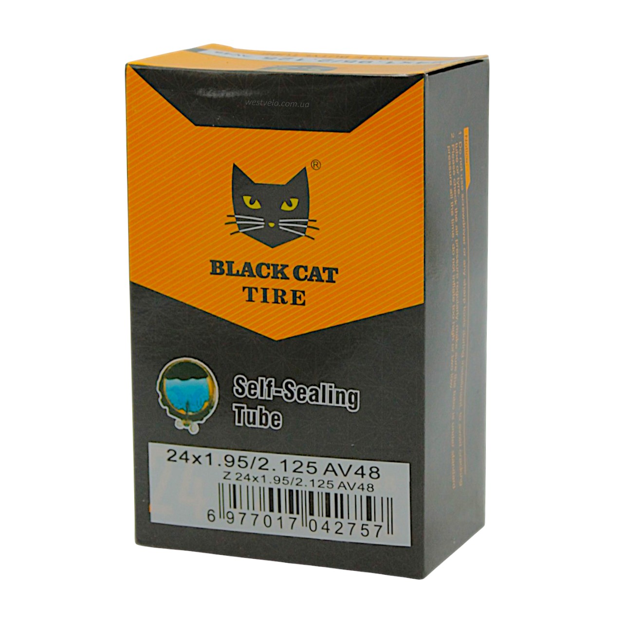 Камера 24. довгий ніпель AV 48mm BLACK CAT (1.95-2.125) самоклеюча (з антипрокольним гелем)
