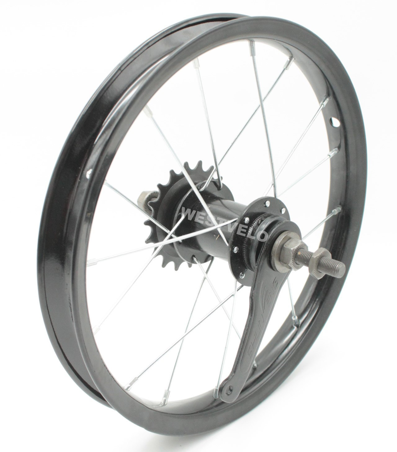 Колесо 14 зад обід чорний, втулка Falcon (чорна) + к-т