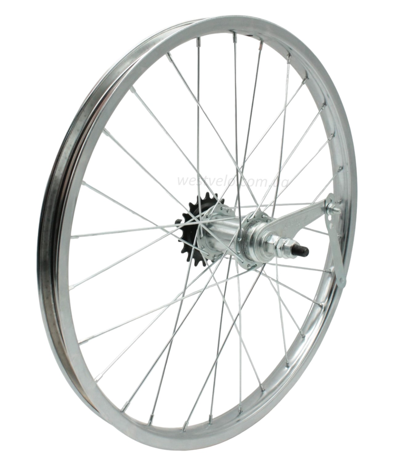 Колесо 20 зад, обід нікель, спиця 2мм, вт. Falcon + к-т.з фліпером.