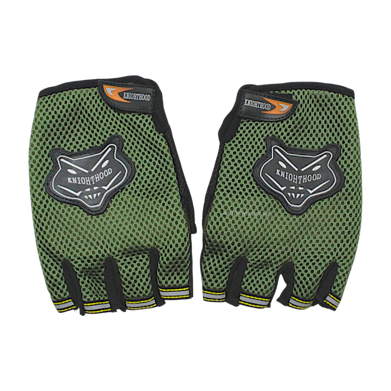 Мото рукавиці (L) "KNI0HTHOOD" чорно-зелені (з відкритими пальцями)