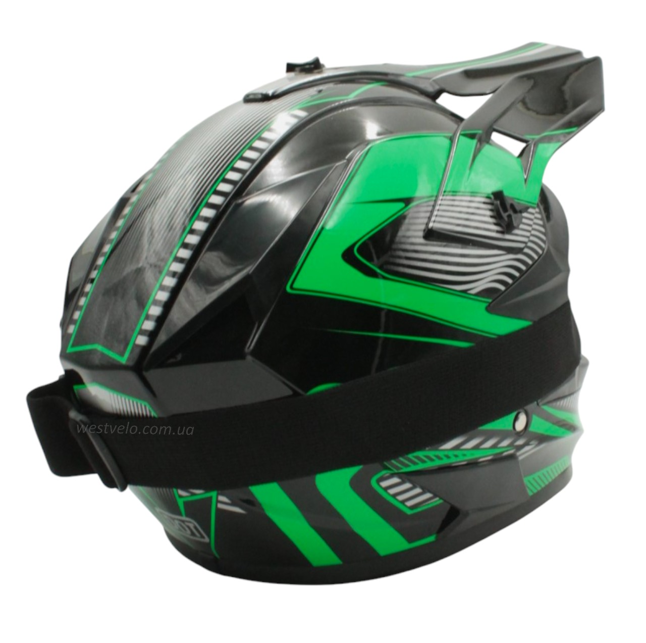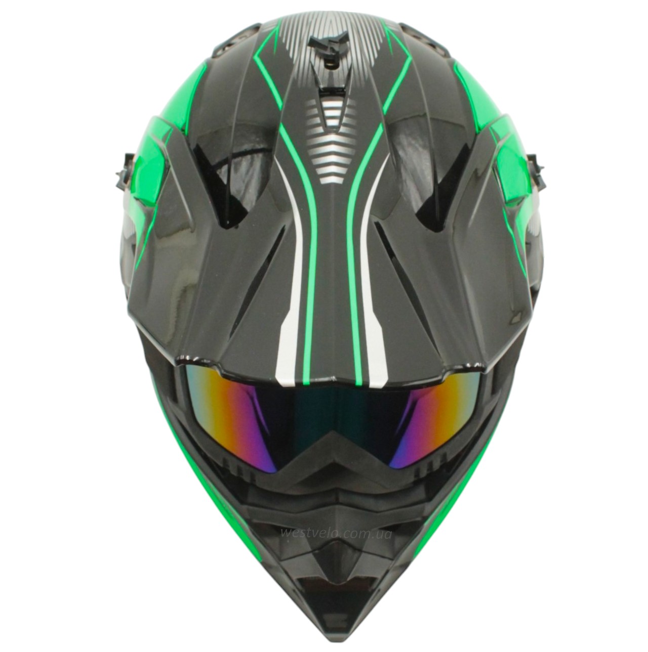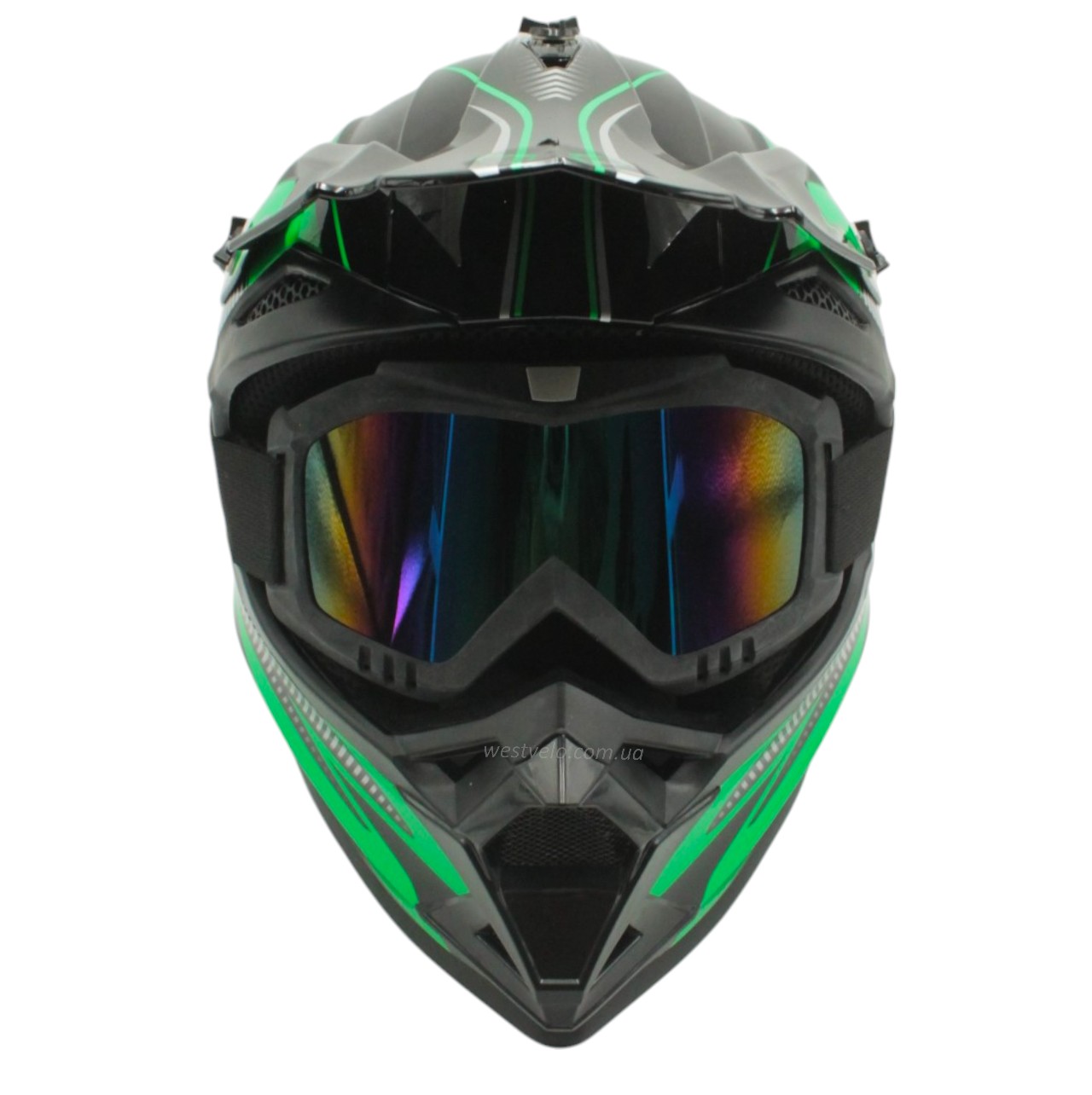 Шолом, закритий крос/ендуро (М) DOT/АТV EDX 025 чорно-зелений глянець з дашком + окуляри