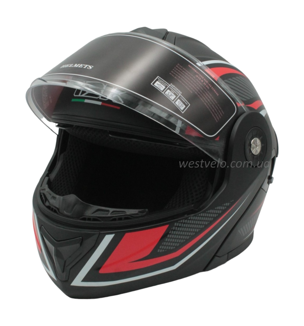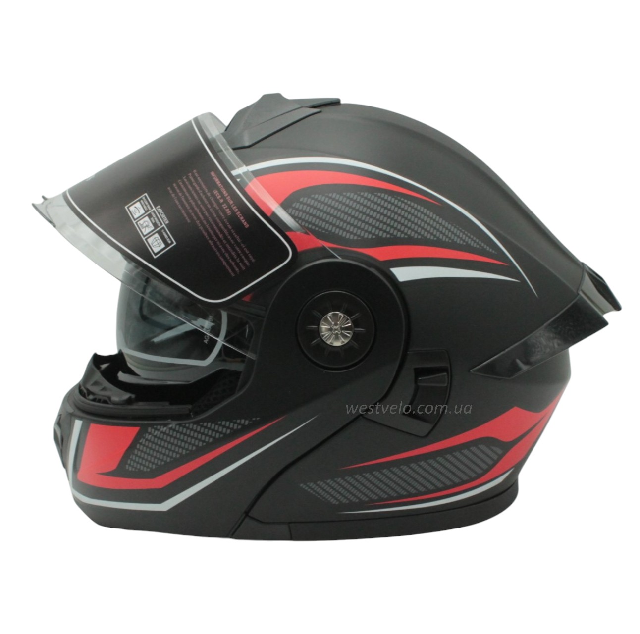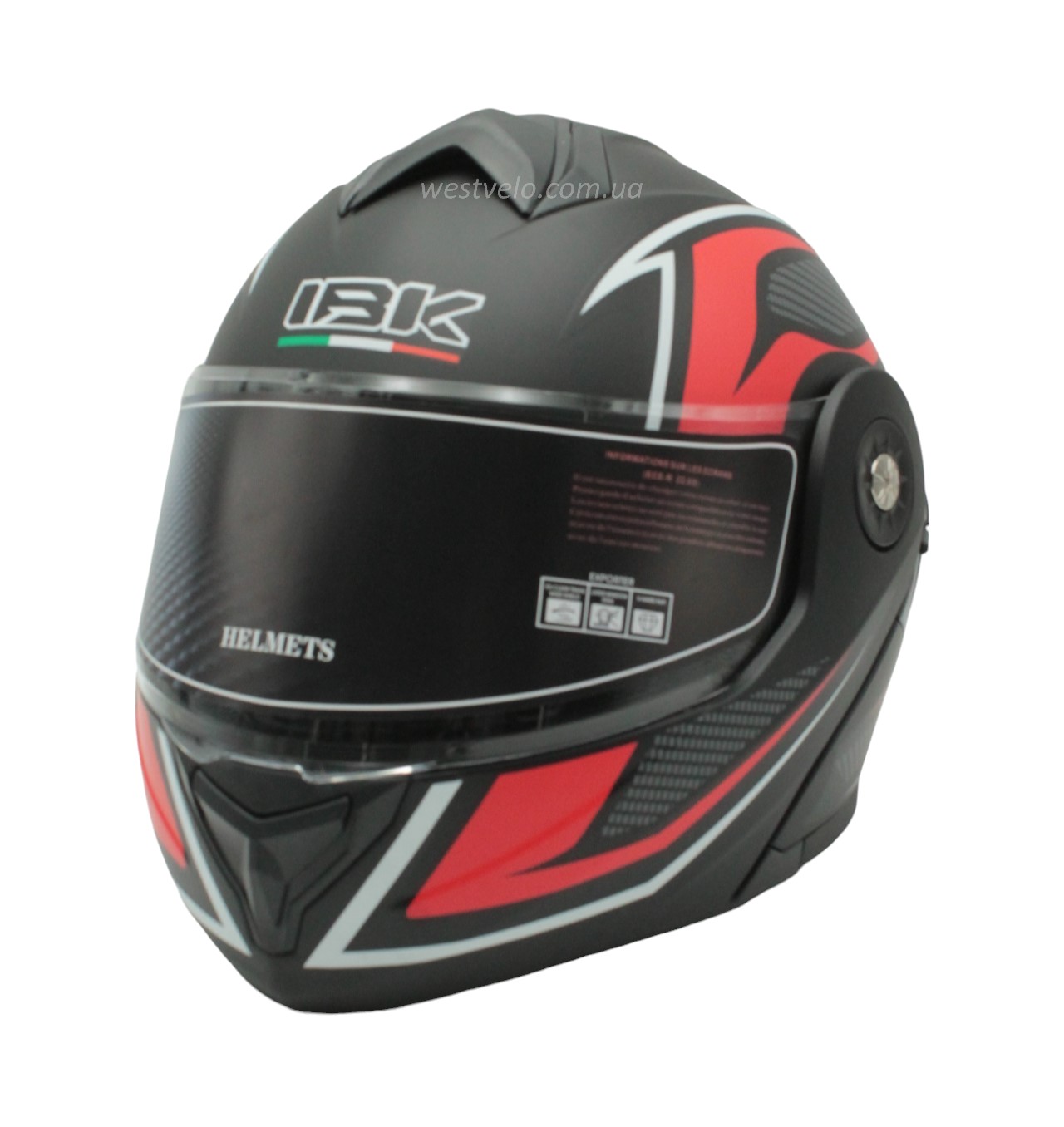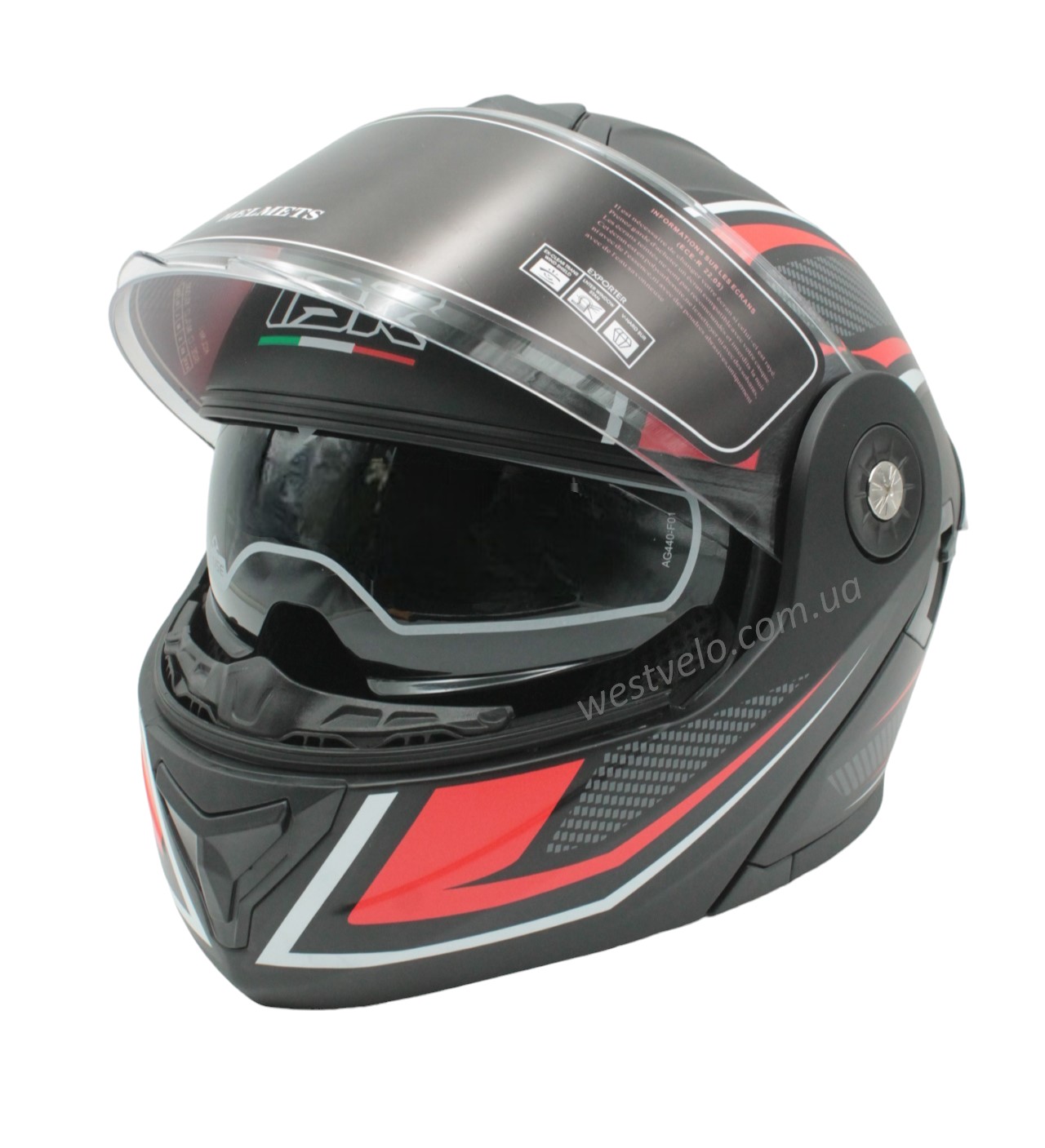 Мото шолом, трансформер (L) IBK-112 чорно-червоний матовий з відкидними окулярами