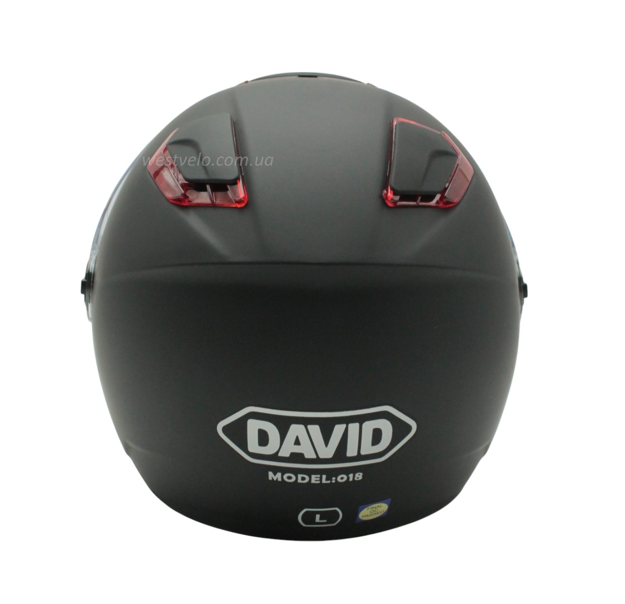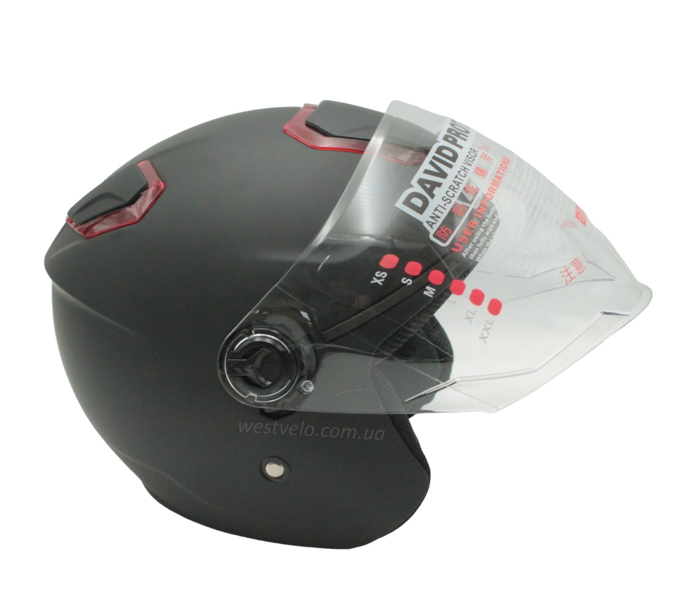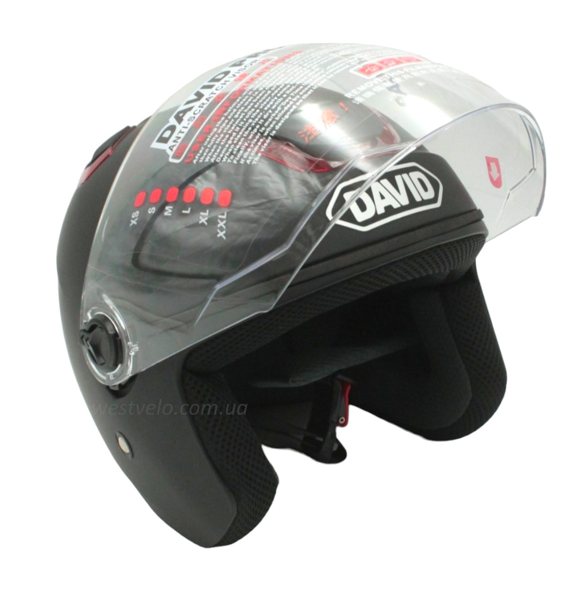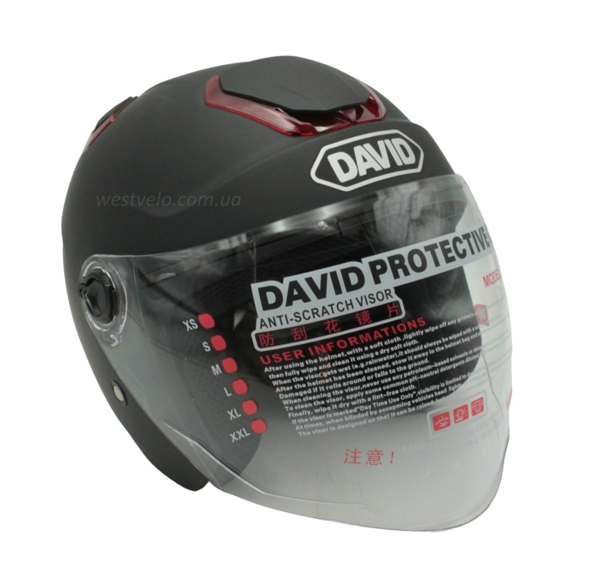 Мото шолом, відкритий (L) "DAVID" D018, чорний матовий з червоними вставками