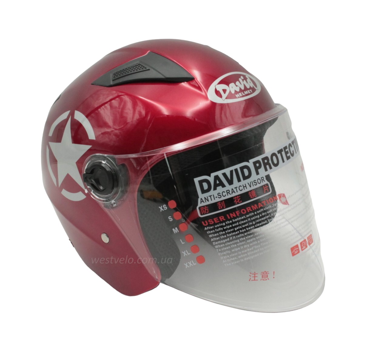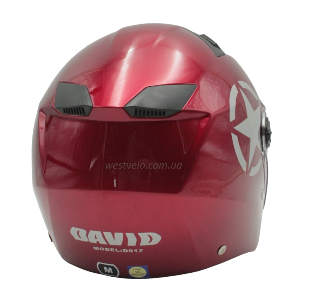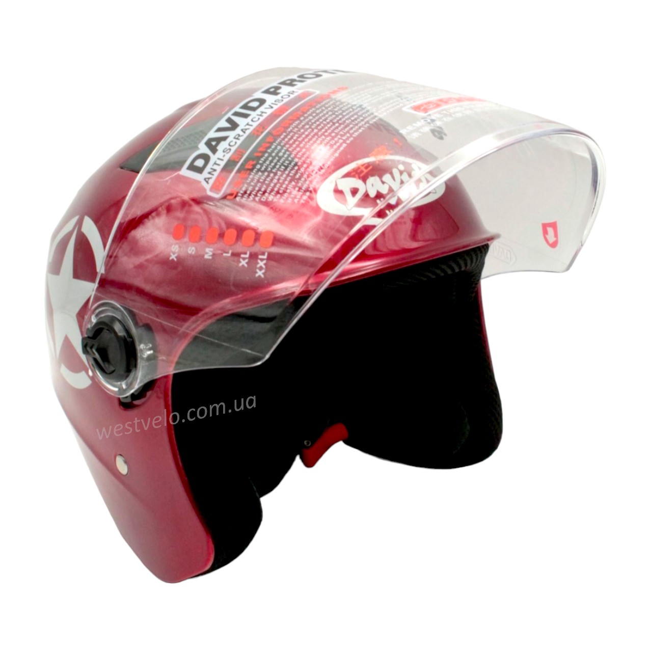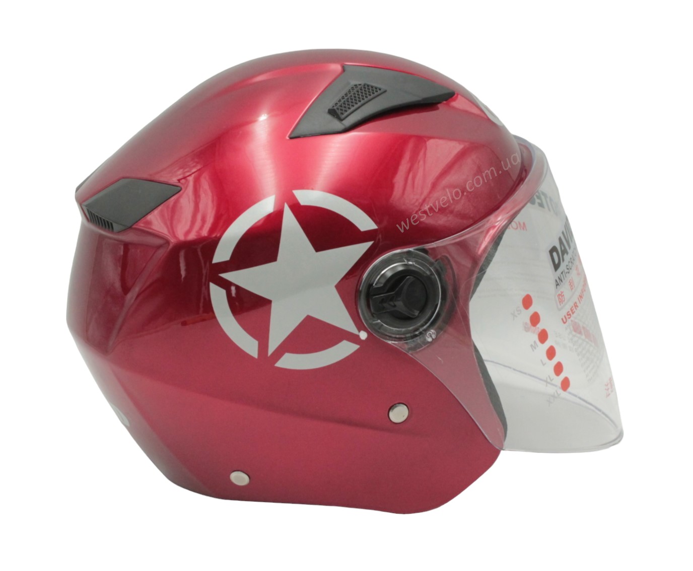 Мото шолом, відкритий (M) "DAVID" D017, Willys Star, червоний глянцевий