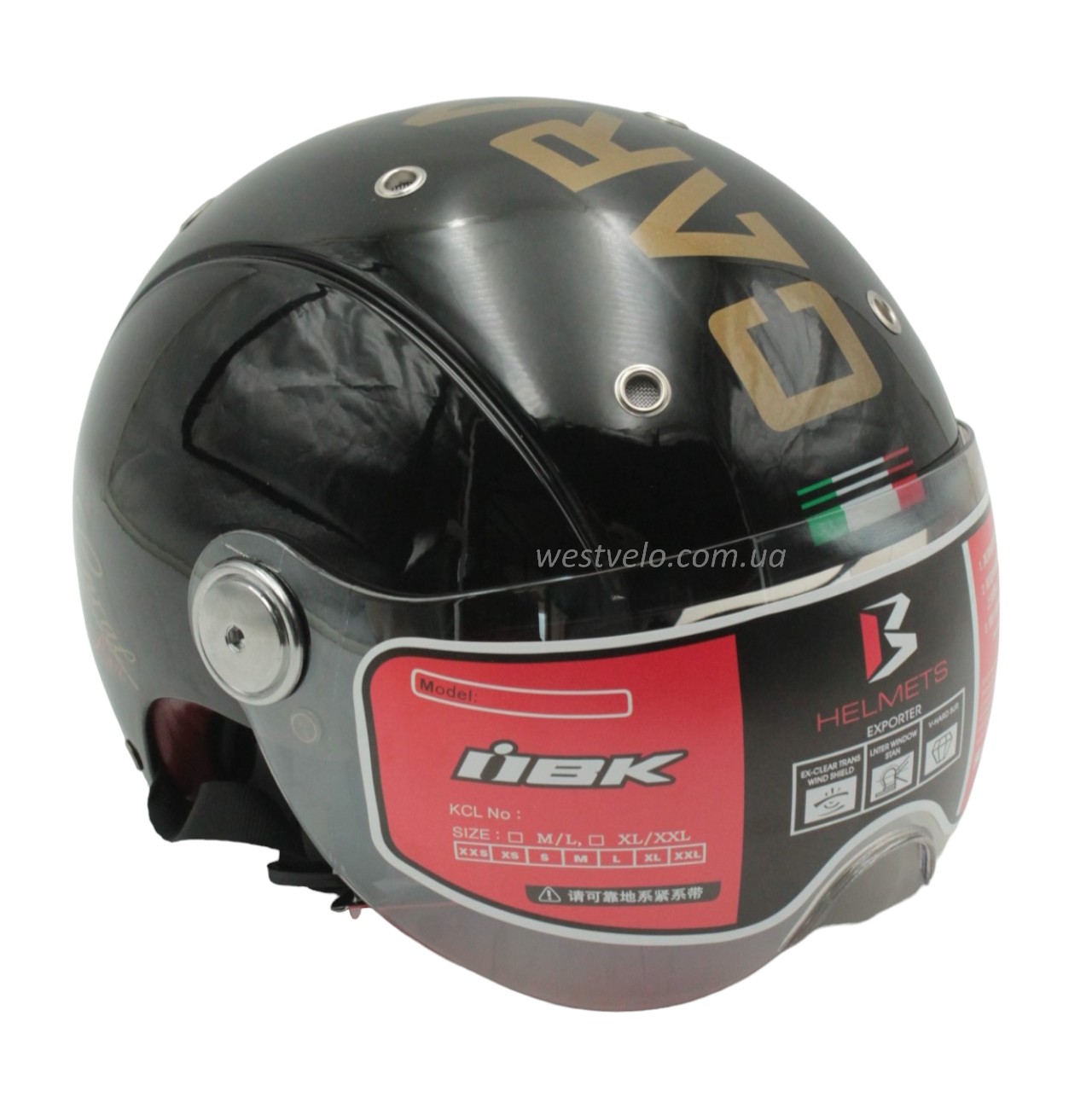 Мото шолом, відкритий (XL) "IBK" 033, чорний глянцевий