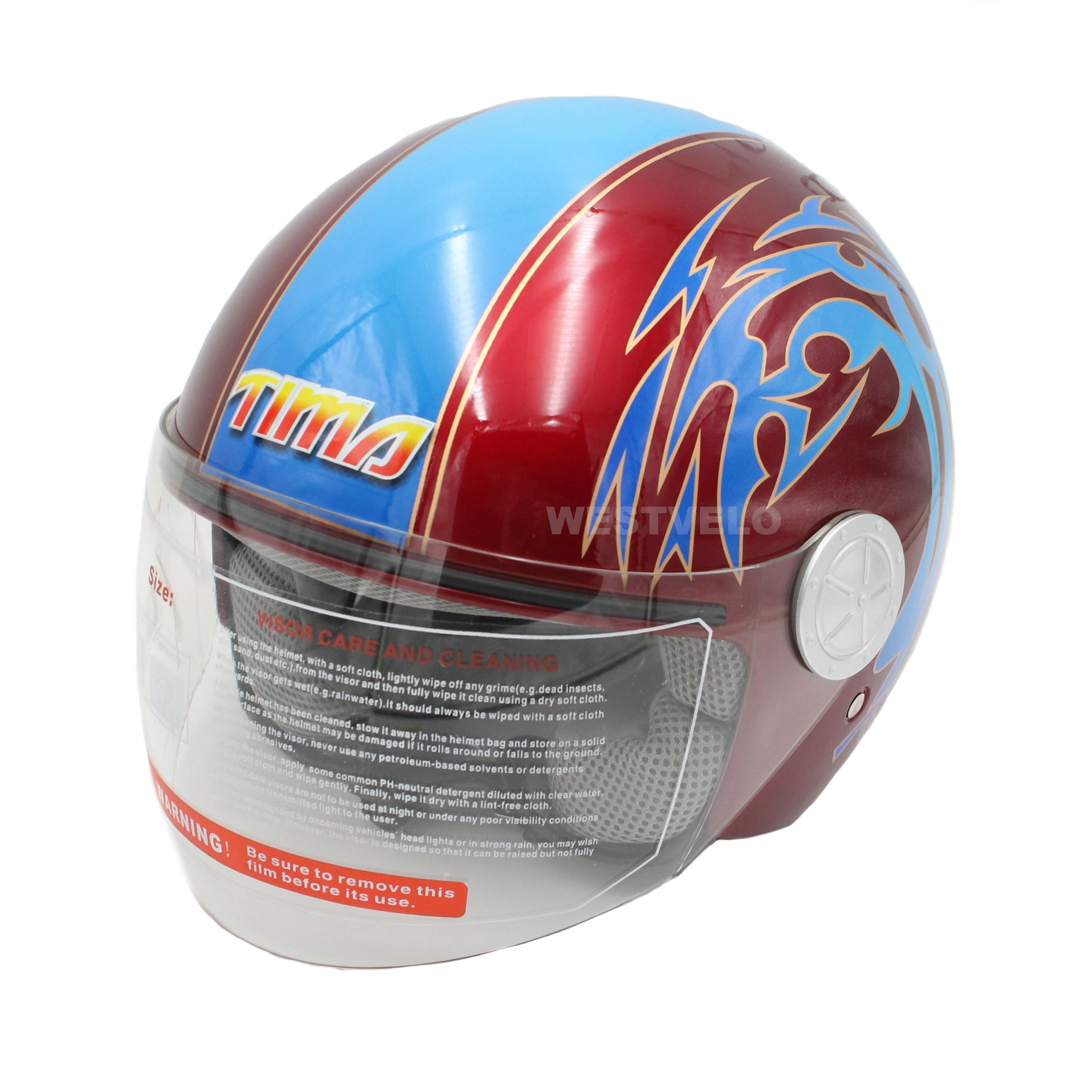 Мото шолом, відкритий (XS 54) TimA №201 червоно-блакитний