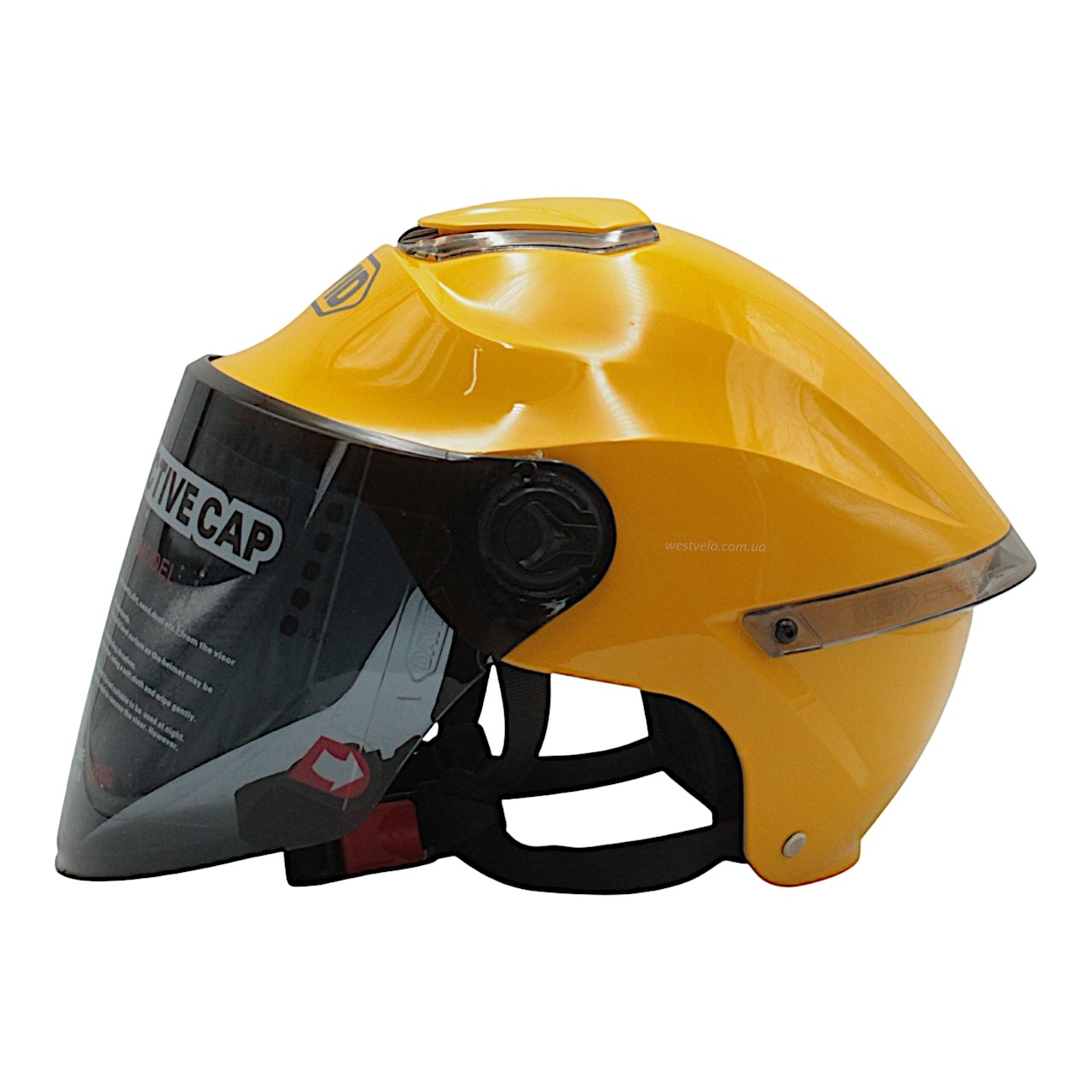 Мото шолом, відкритий "DAVID" S307, жовтий глянцевий тоноване скло, регулятор розміру з білим катафотом (ABS)