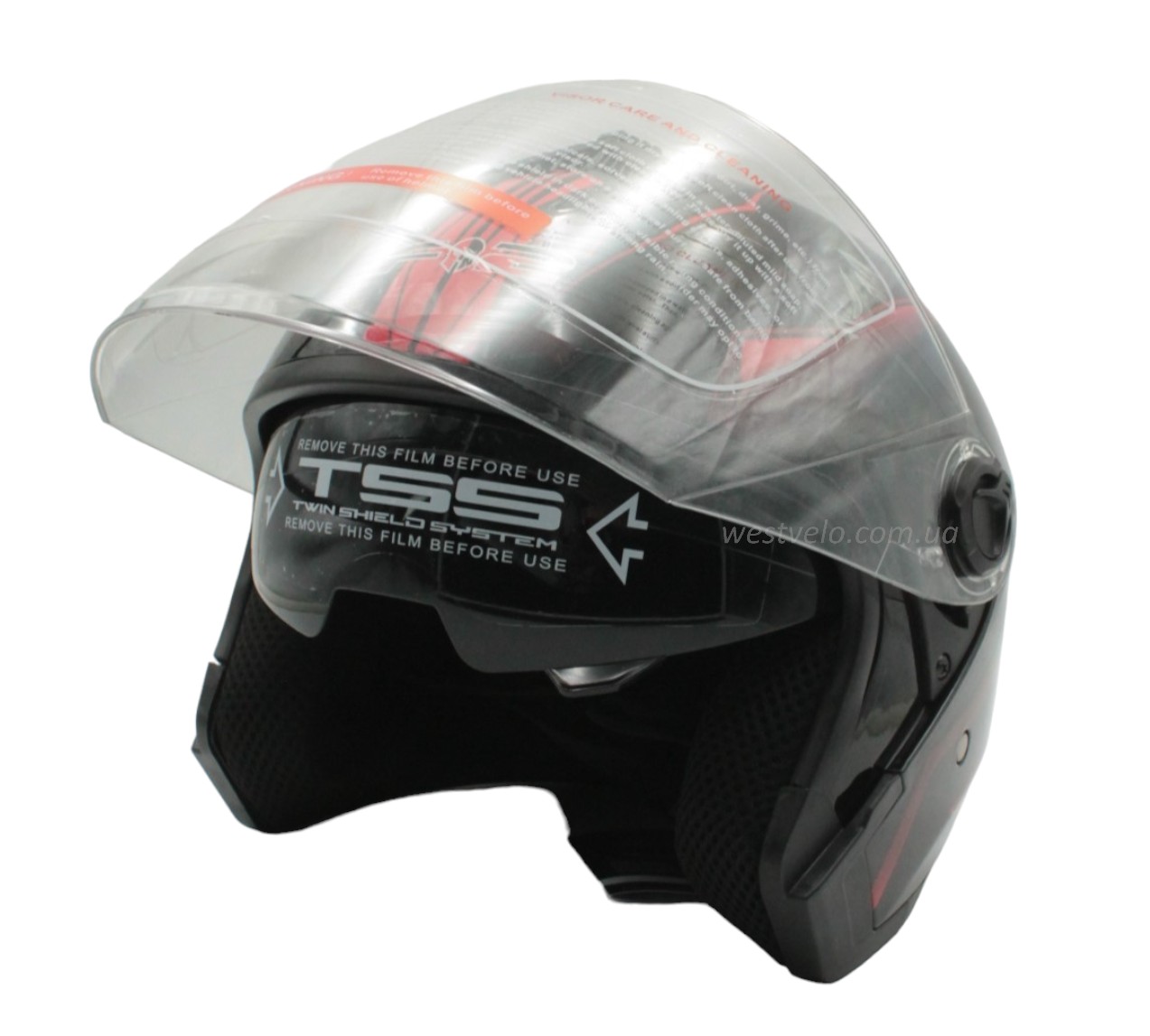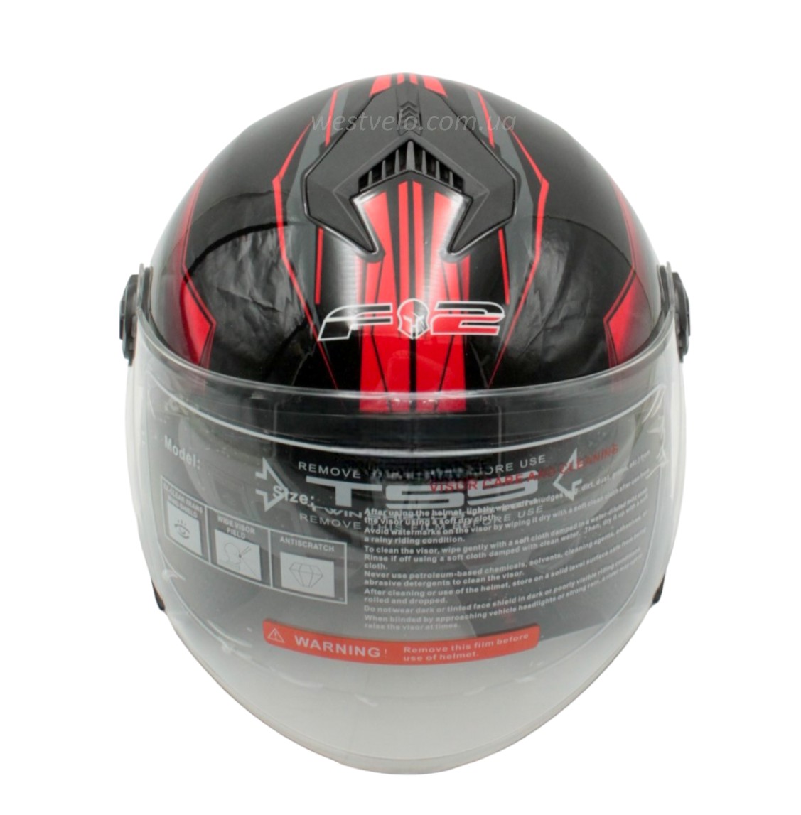 Мото шолом, відкритий (XS 53-54) F2-707, чорно-червоний, глянець, з відкідними окулярами