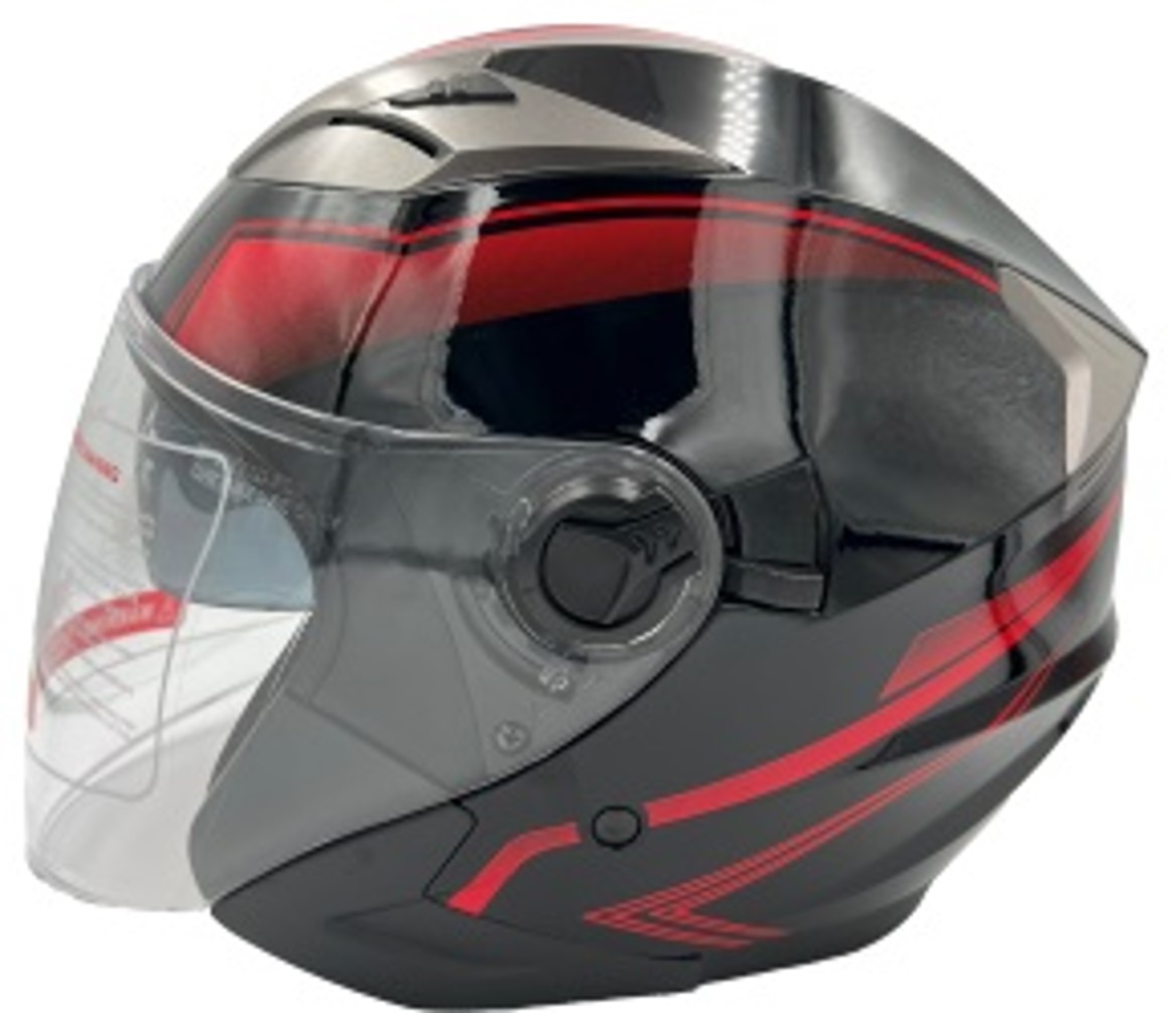 Мото шолом, відкритий (L) GXT "1001-1", чорний глянцевий з червоними вставками, з відкидними окулярами