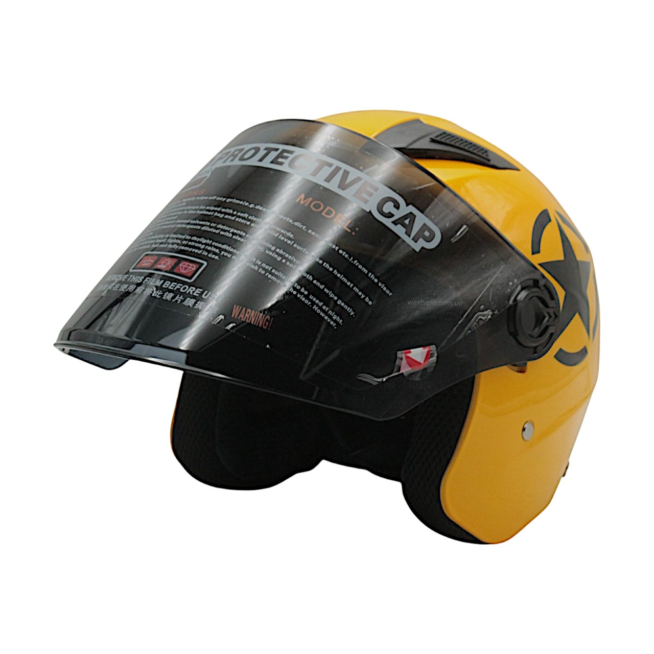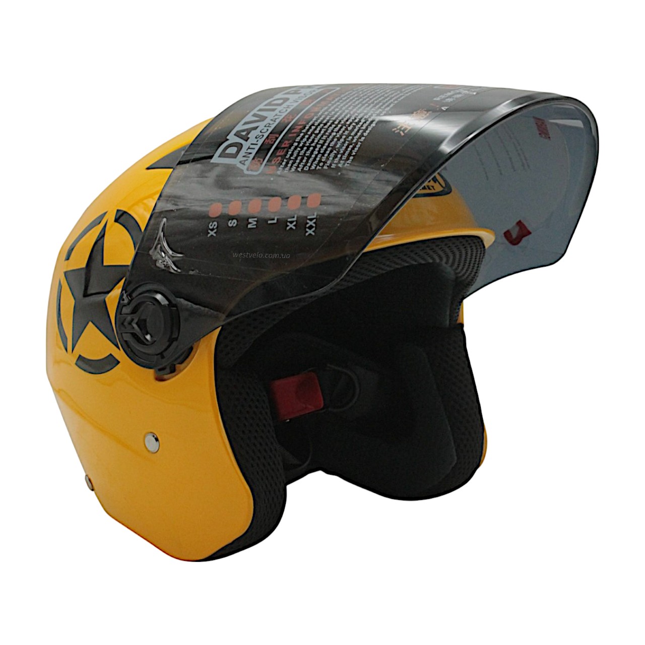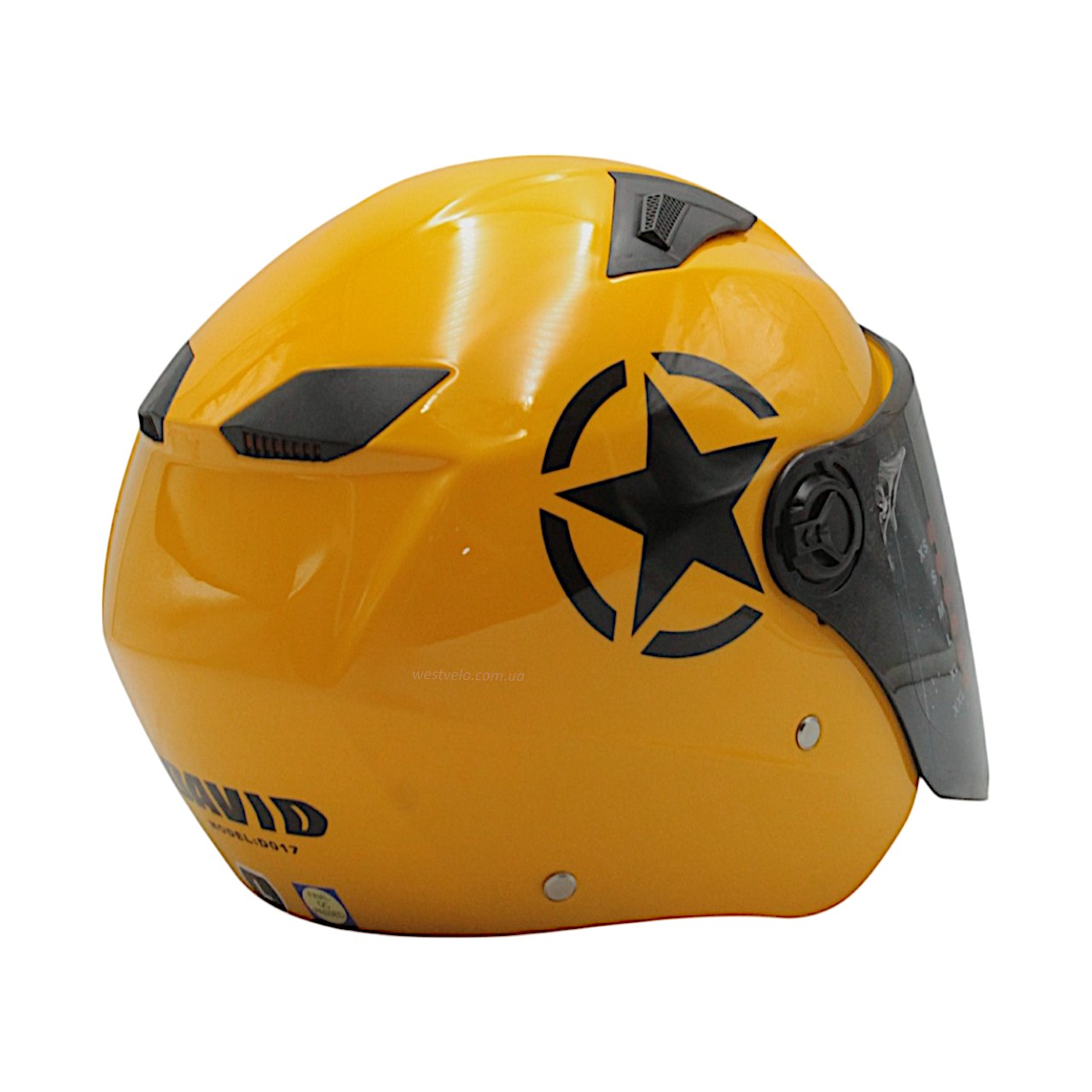 Мото шолом, відкритий (L) "DAVID" D017, Willys Star, жовтий глянцевий (ABS)