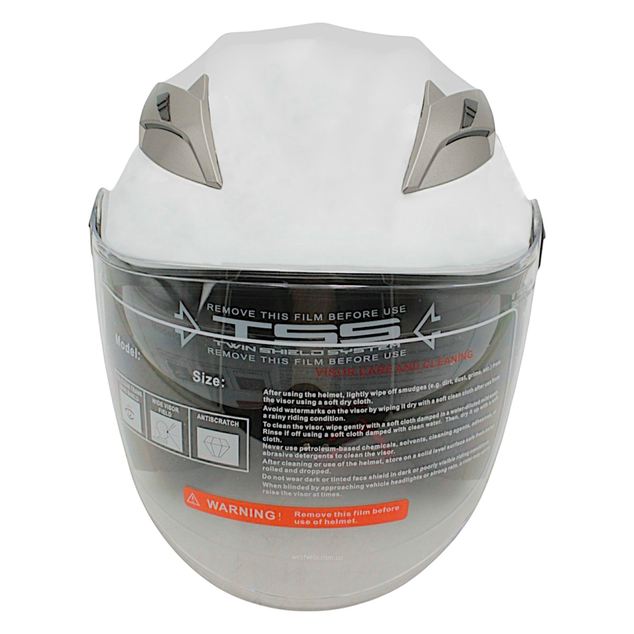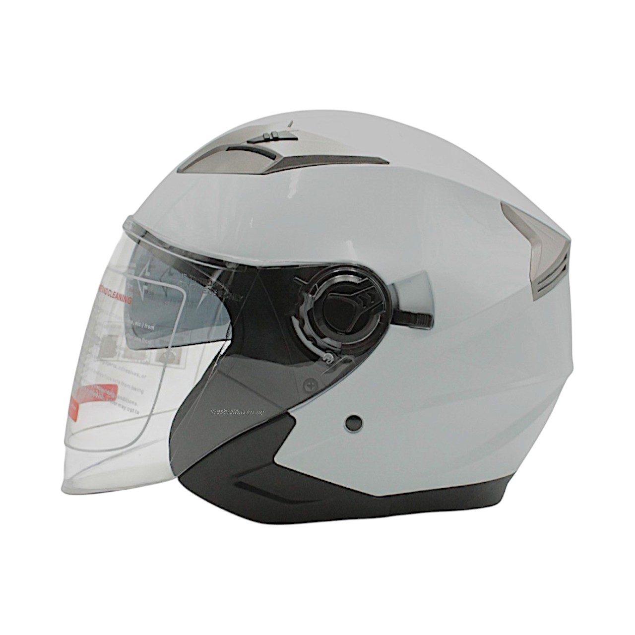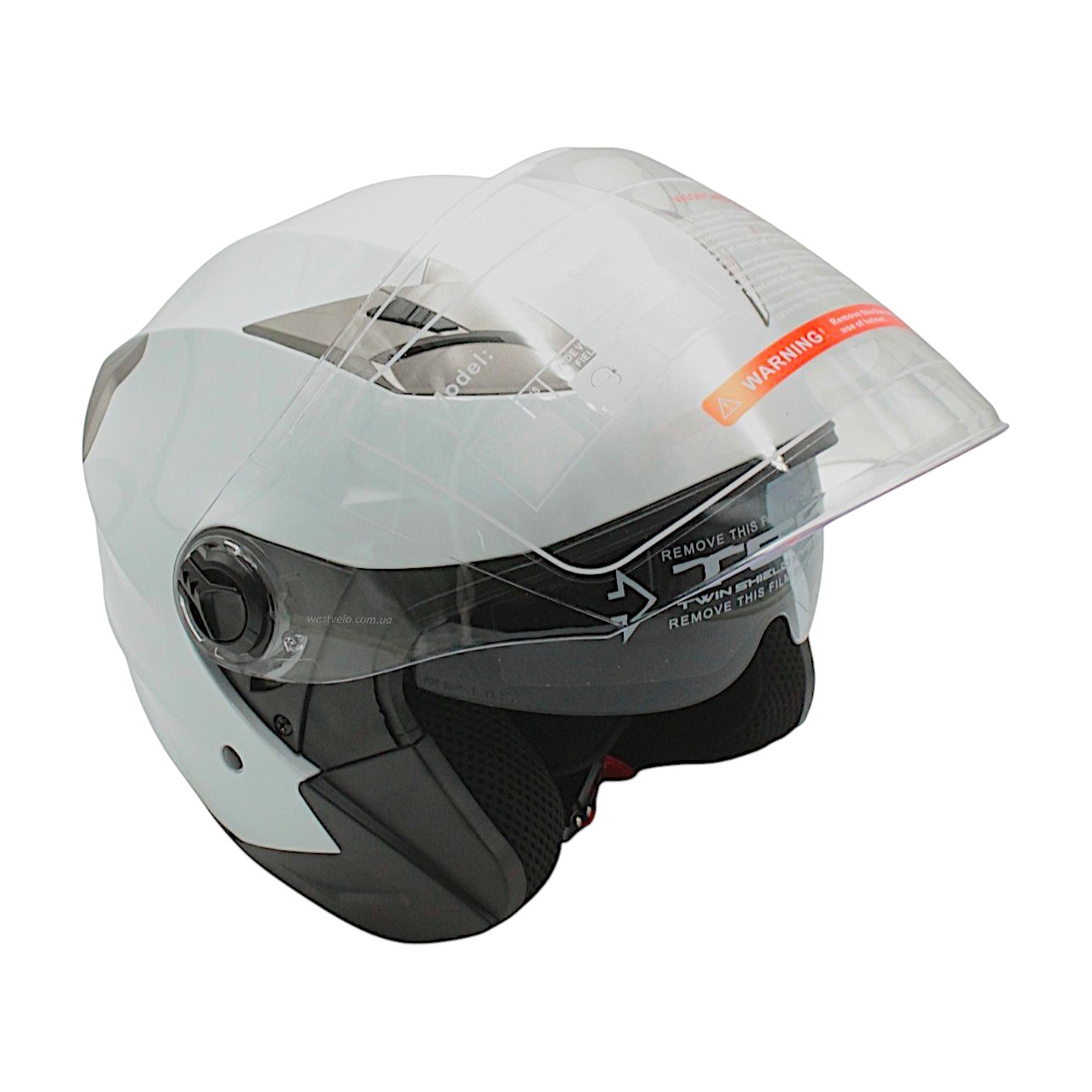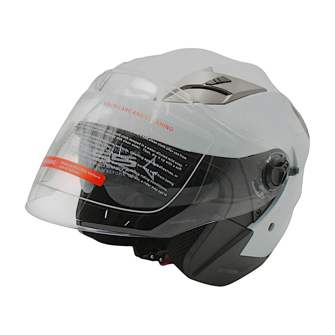 Мото шолом, відкритий (M 57-58) BLD-708 білий глянець з відкидними окулярами