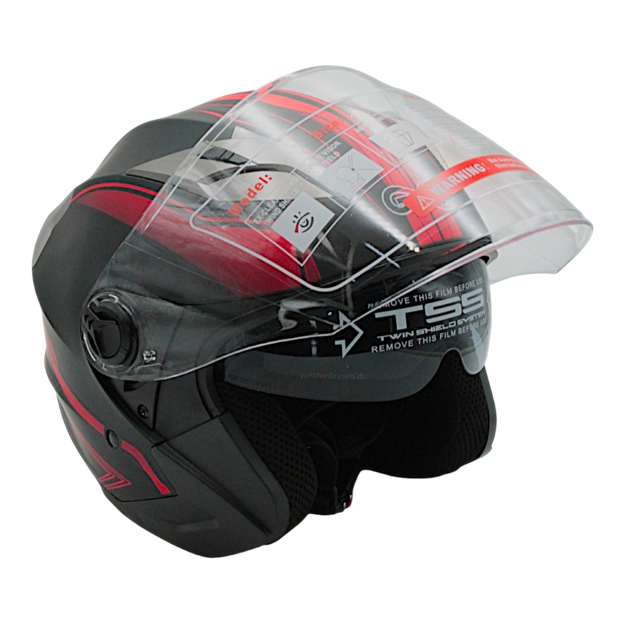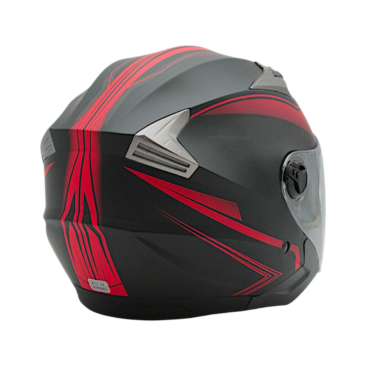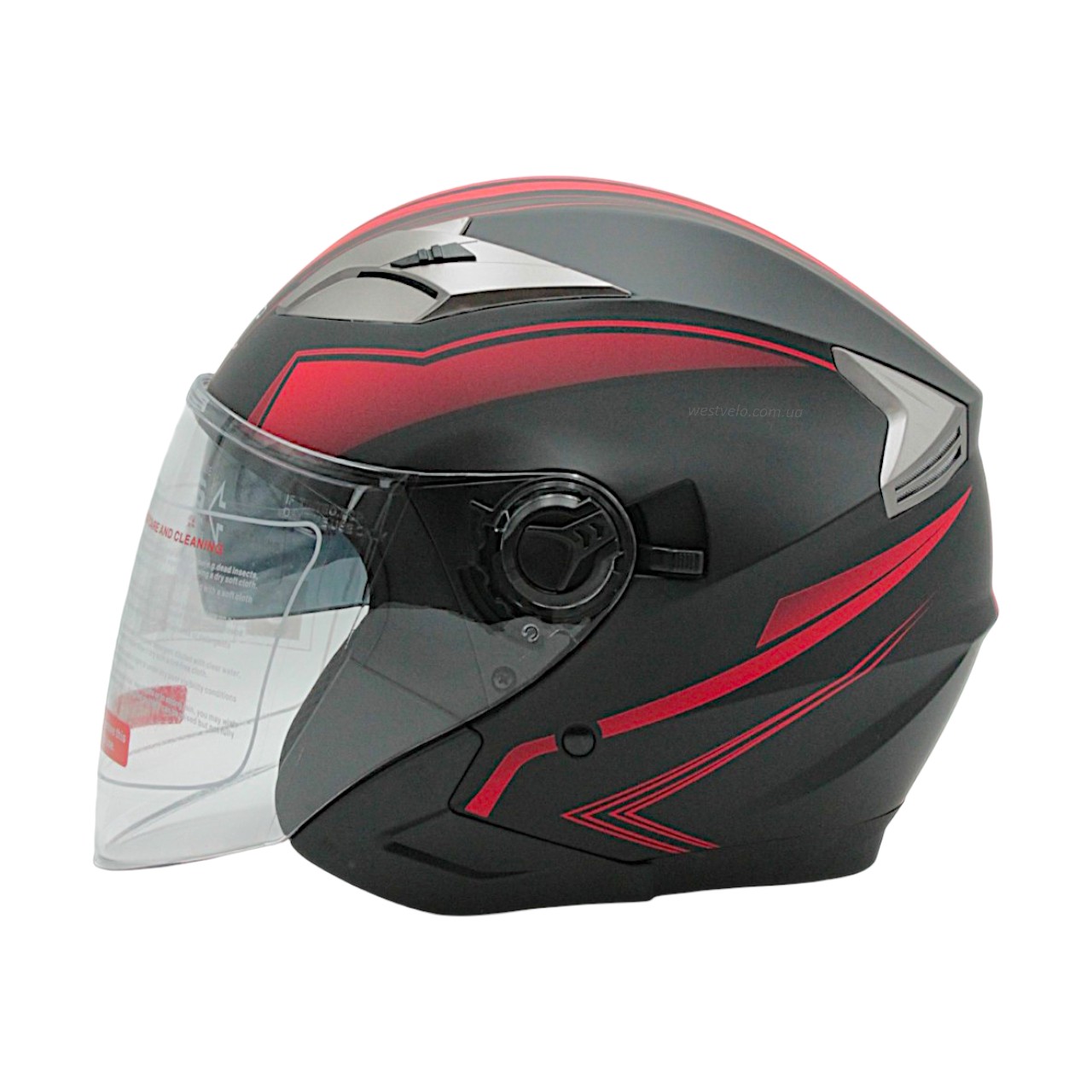 Мото шолом, відкритий (M 57-58) GXT "1001-5", чорний матовий з червоними вставками з відкидними окулярами