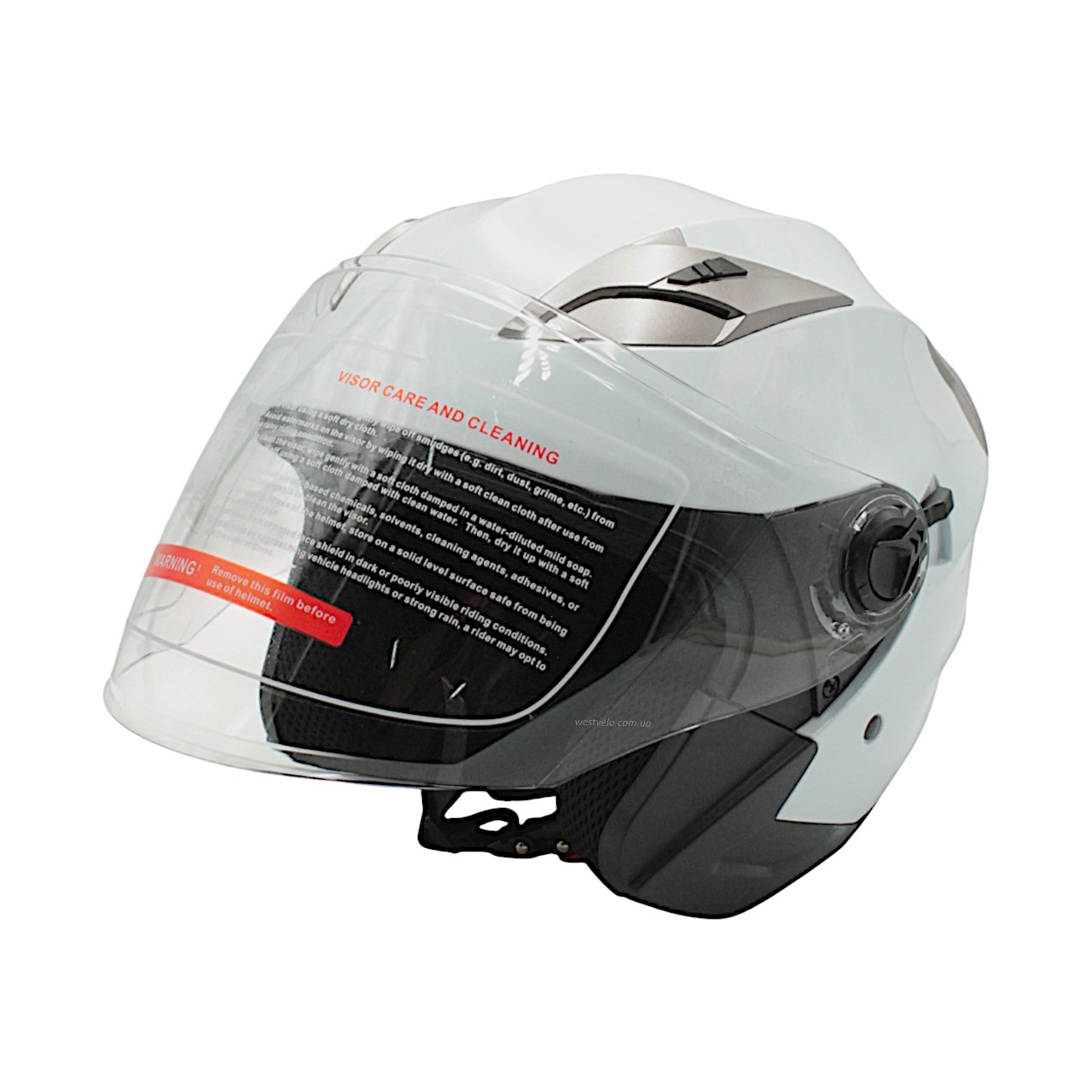 Мото шолом, відкритий (S) (55-56см) BLD-708 білий глянець з відкидними окулярами
