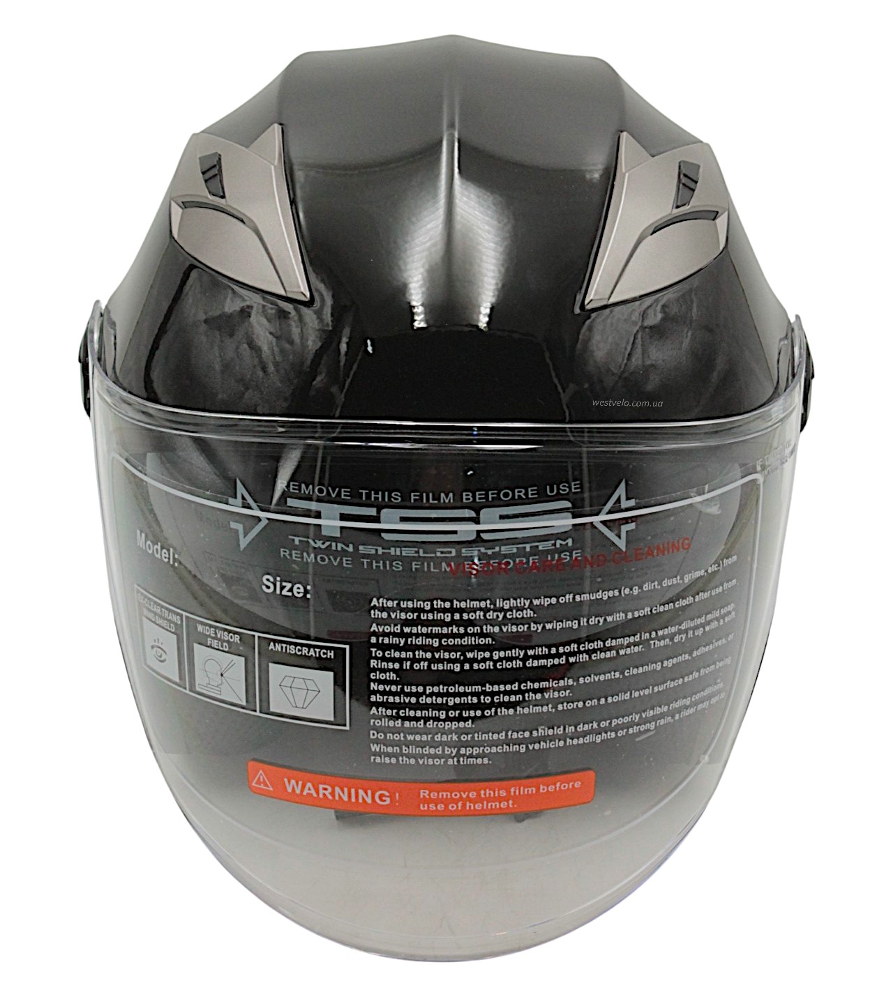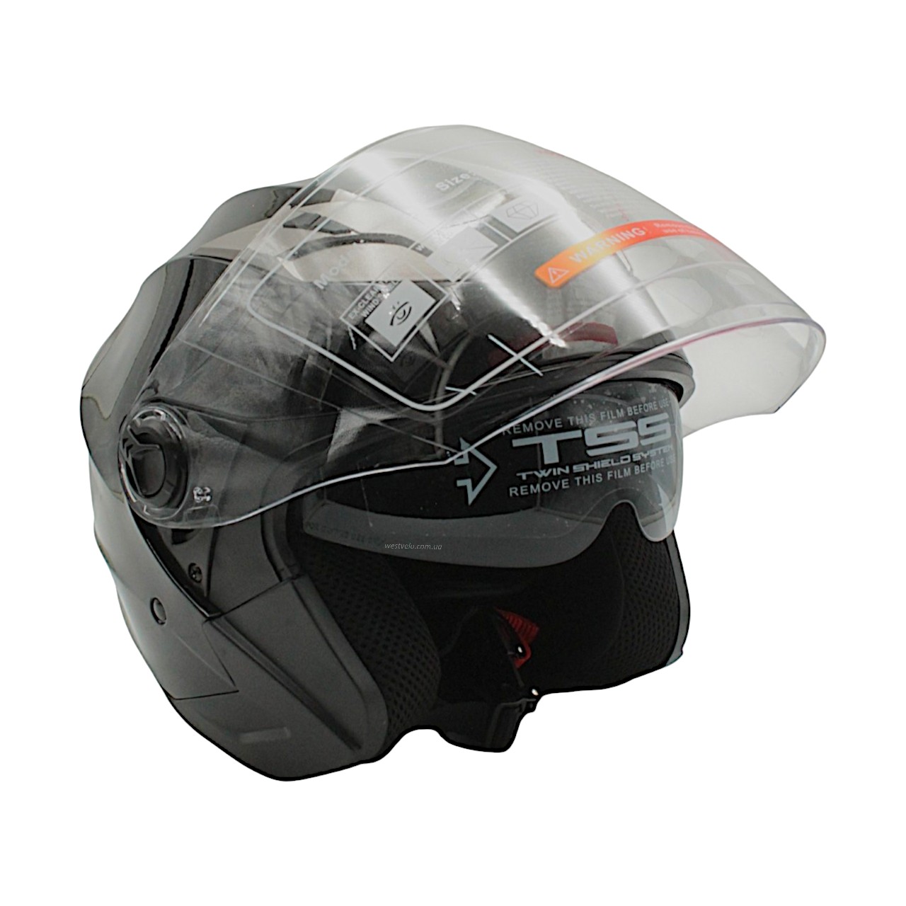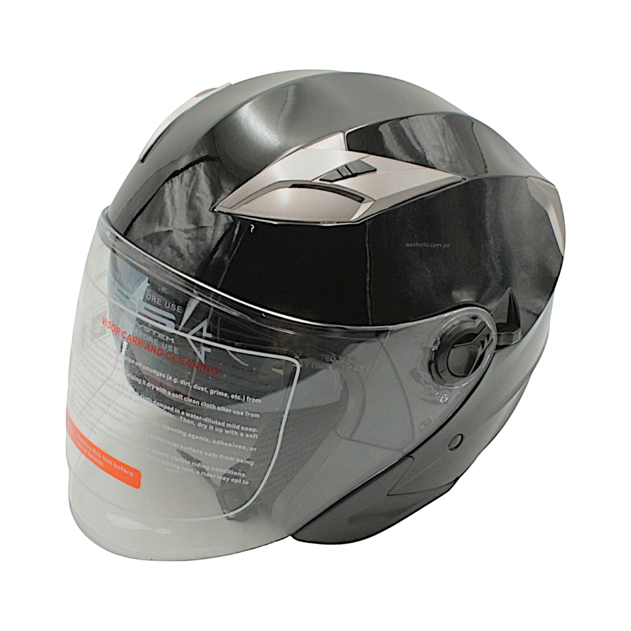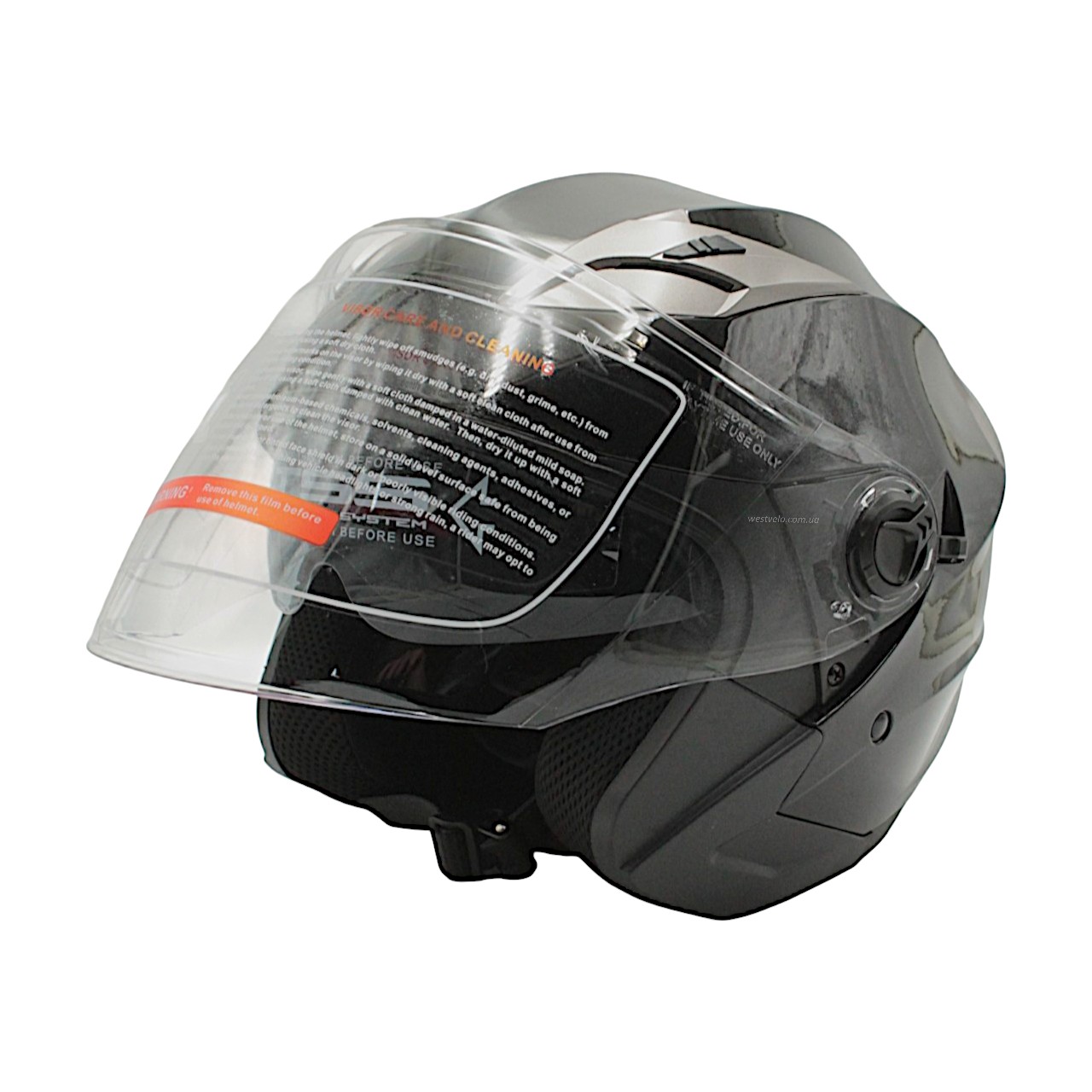 Мото шолом, відкритий (S) (55-56см) BLD-708 чорний глянець з відкидними окулярами