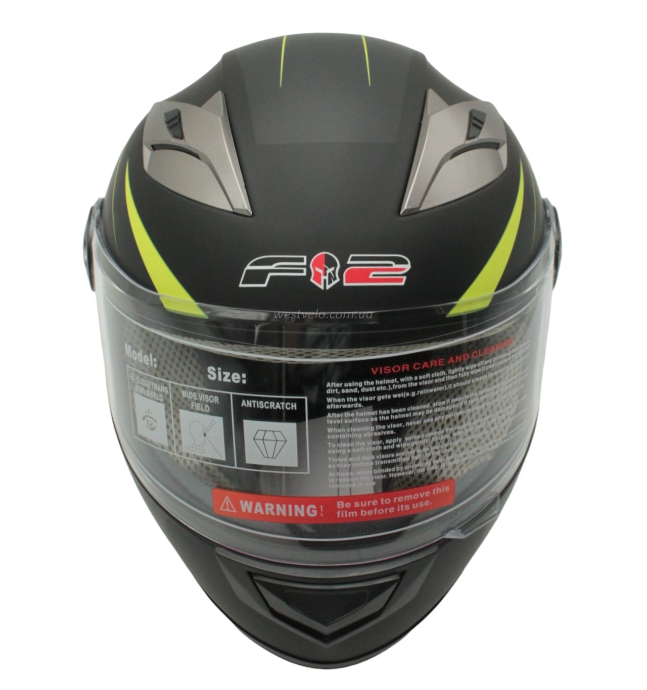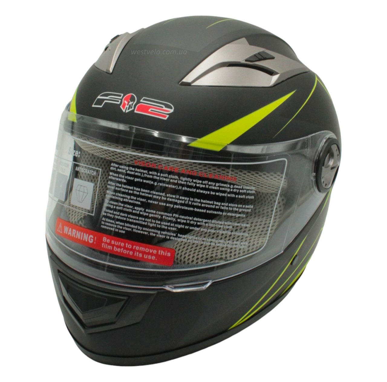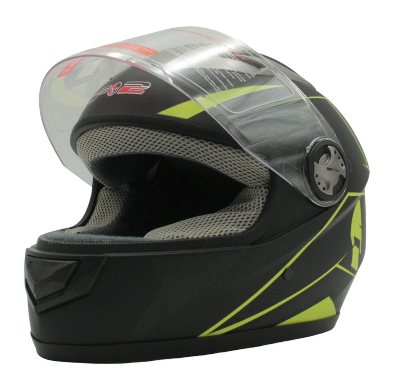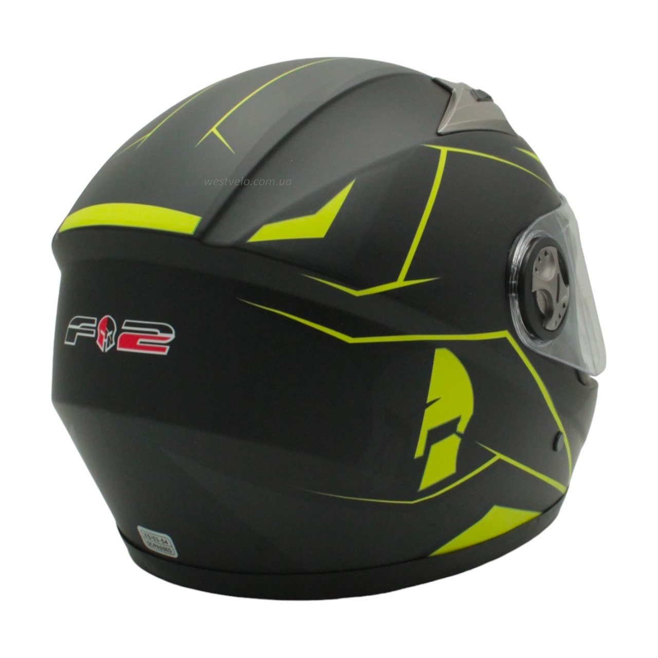 Мото шолом, закритий (XS 53-54) F2 830-2 Інтеграл,Neon yellow #2, чорний матовий