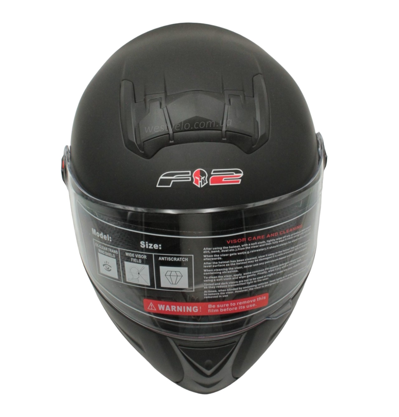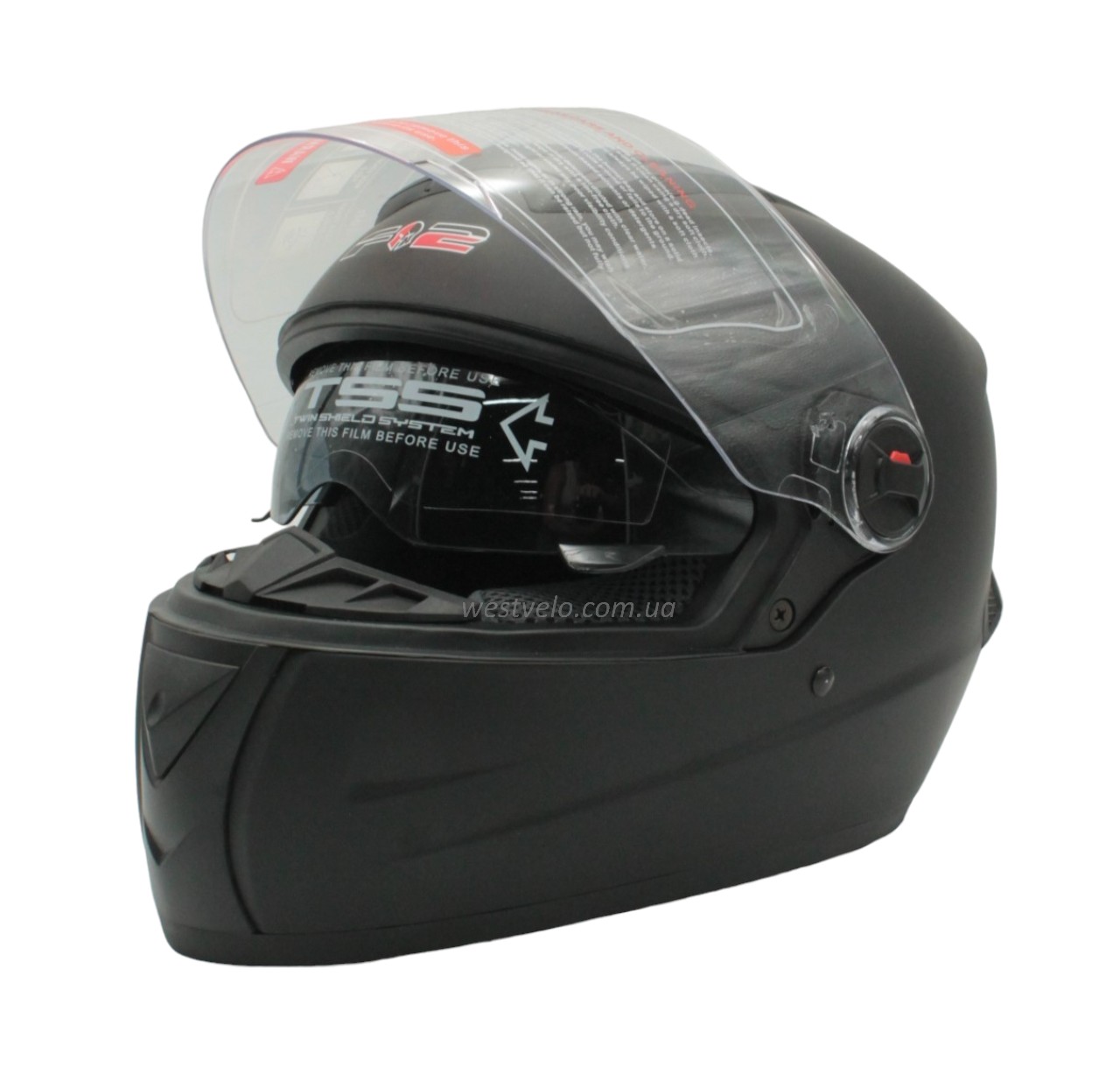 Мото шолом, закритий (S 55-56) F2 М61 чорний, матовий з відкидними окулярами