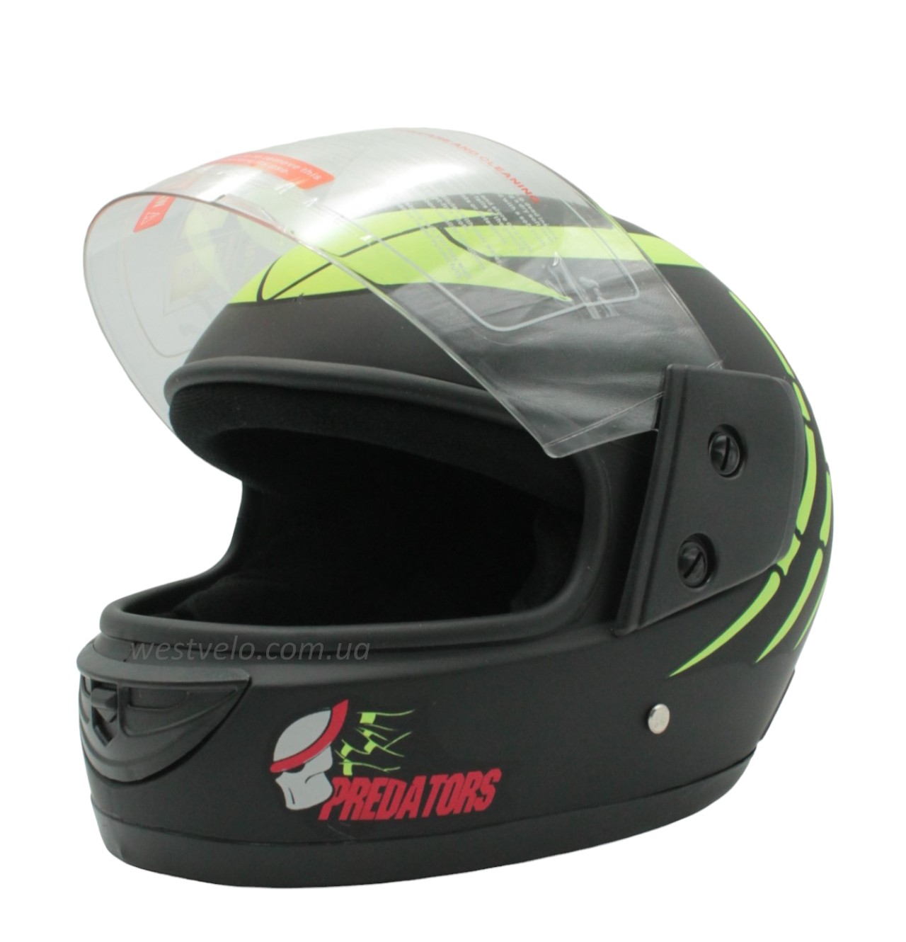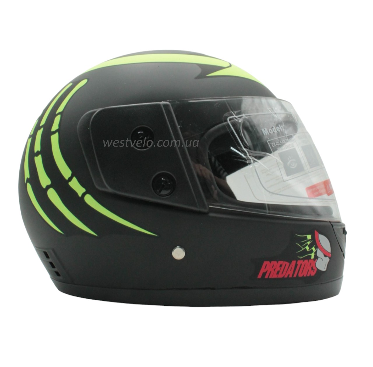 Мото шолом, закритий (XS) F2 "PREDA TORS" чорно-салатовий матовий (825-4)
