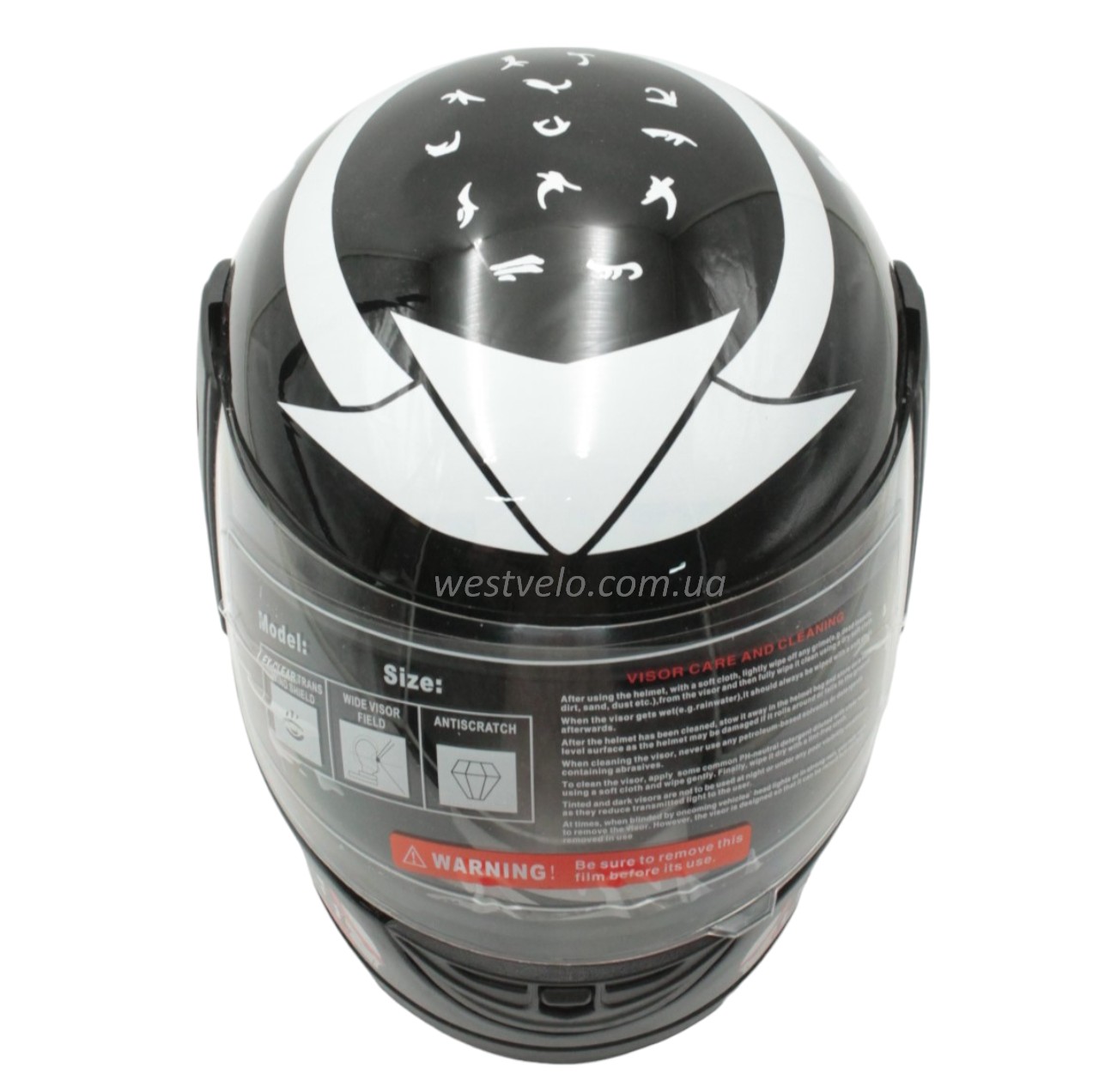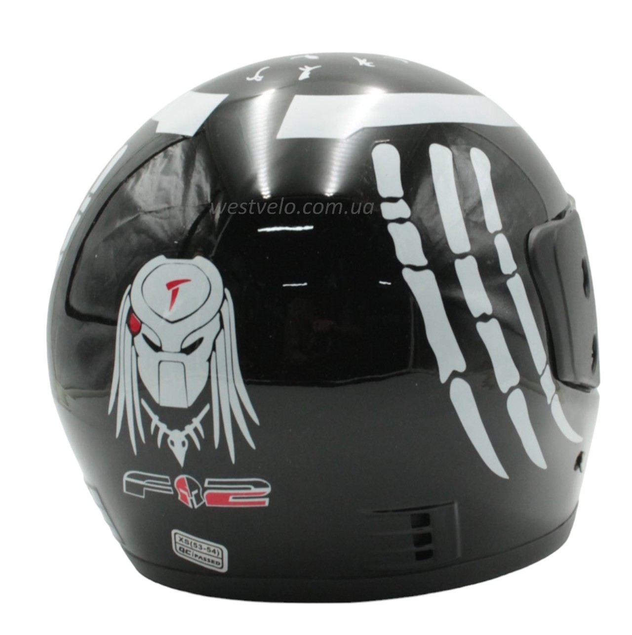 Мото шолом, закритий (XS 53-54) F2 "PREDA TORS" чорно-білий глянець (825-4)