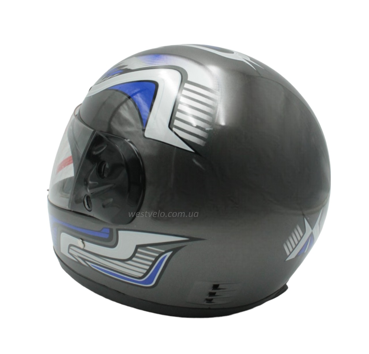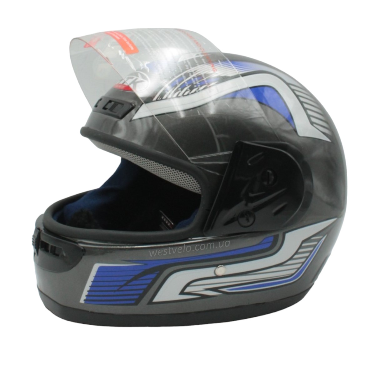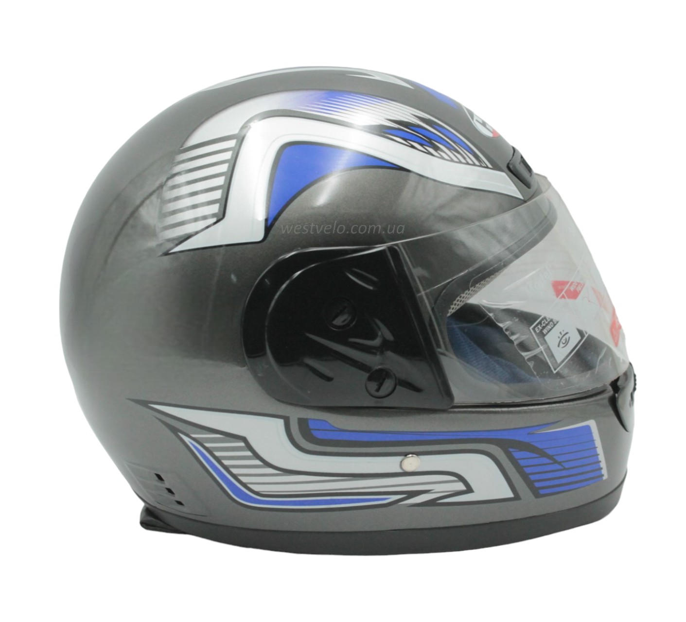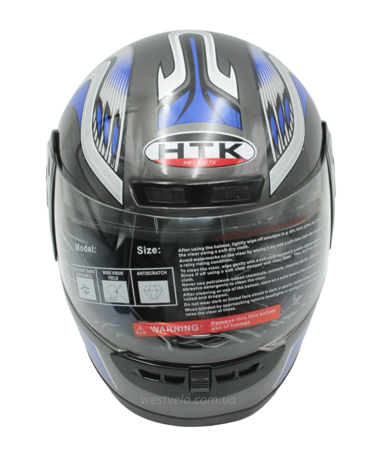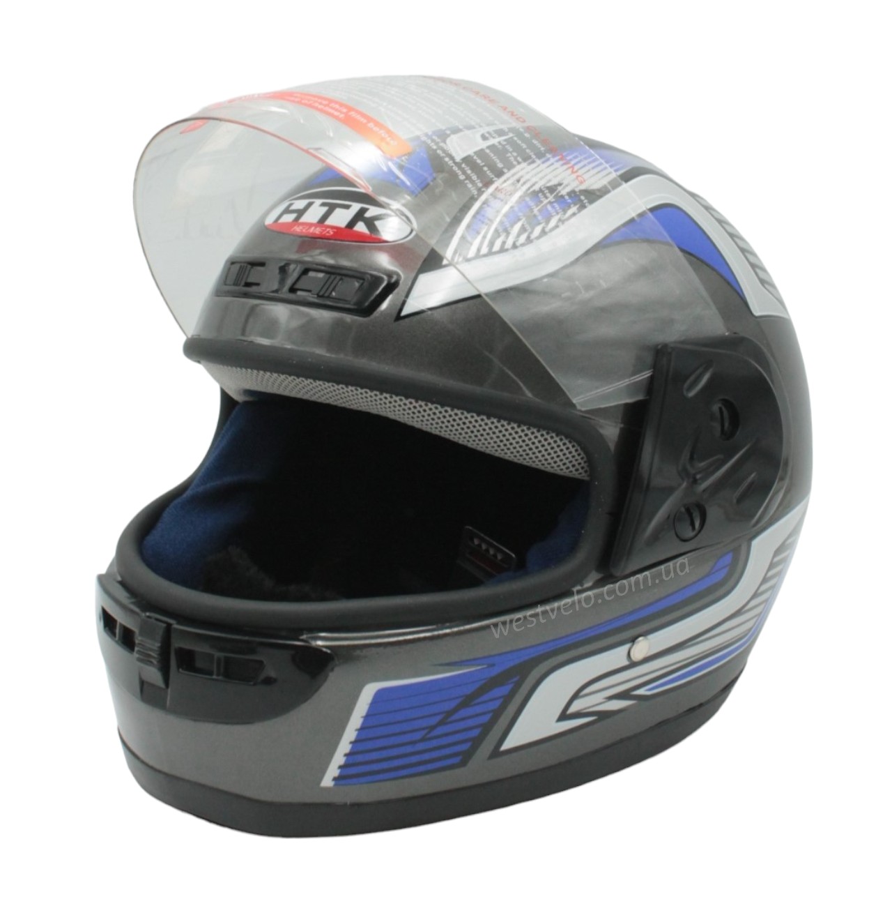 Мото шолом, закритий HTK-221,інтеграл, сірий глянець з синьо-білим малюнком