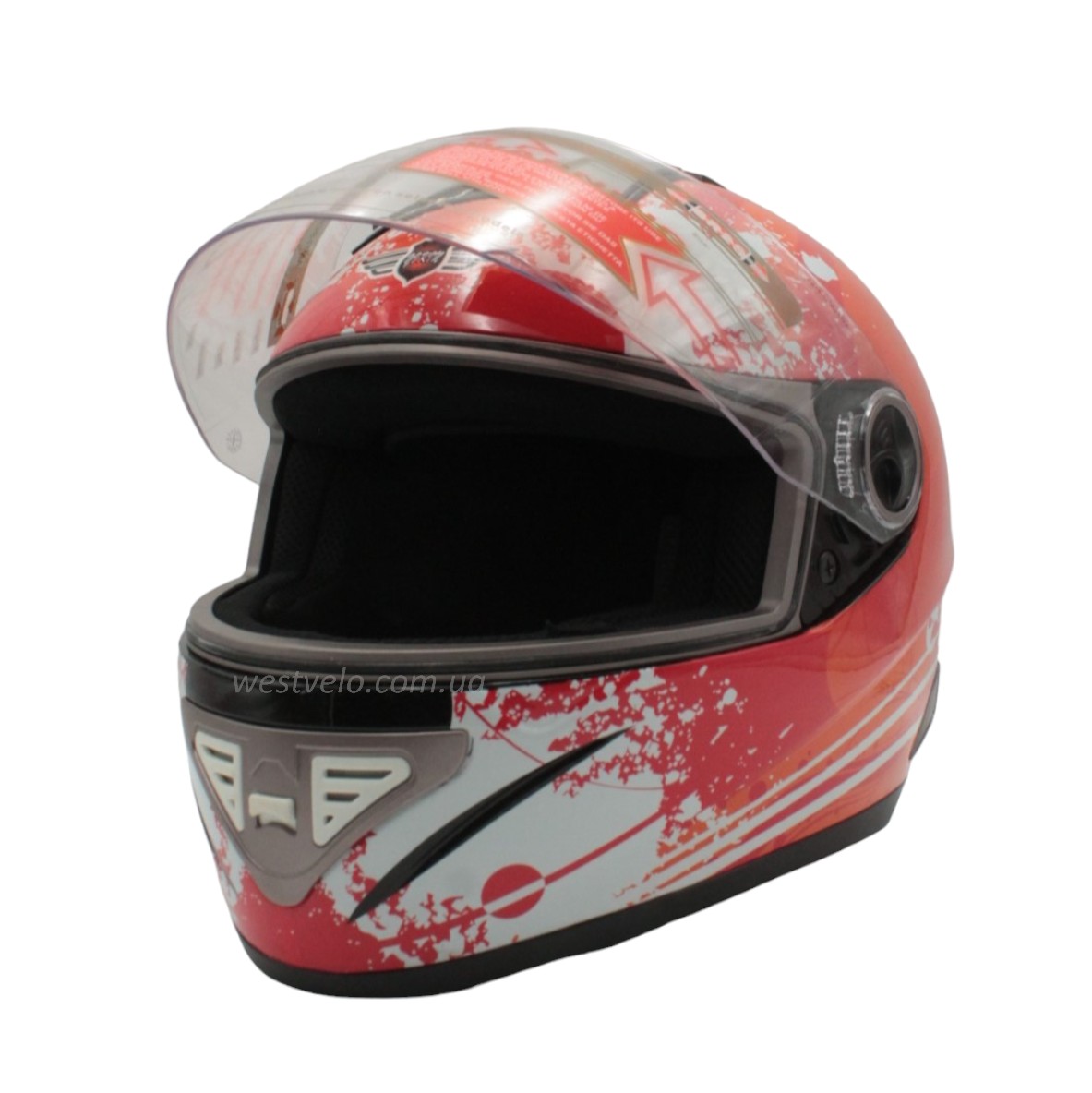 Мото шолом, закритий (XL) "KOJI" Інтеграл 550, біло-червоний глянцевий, premium class