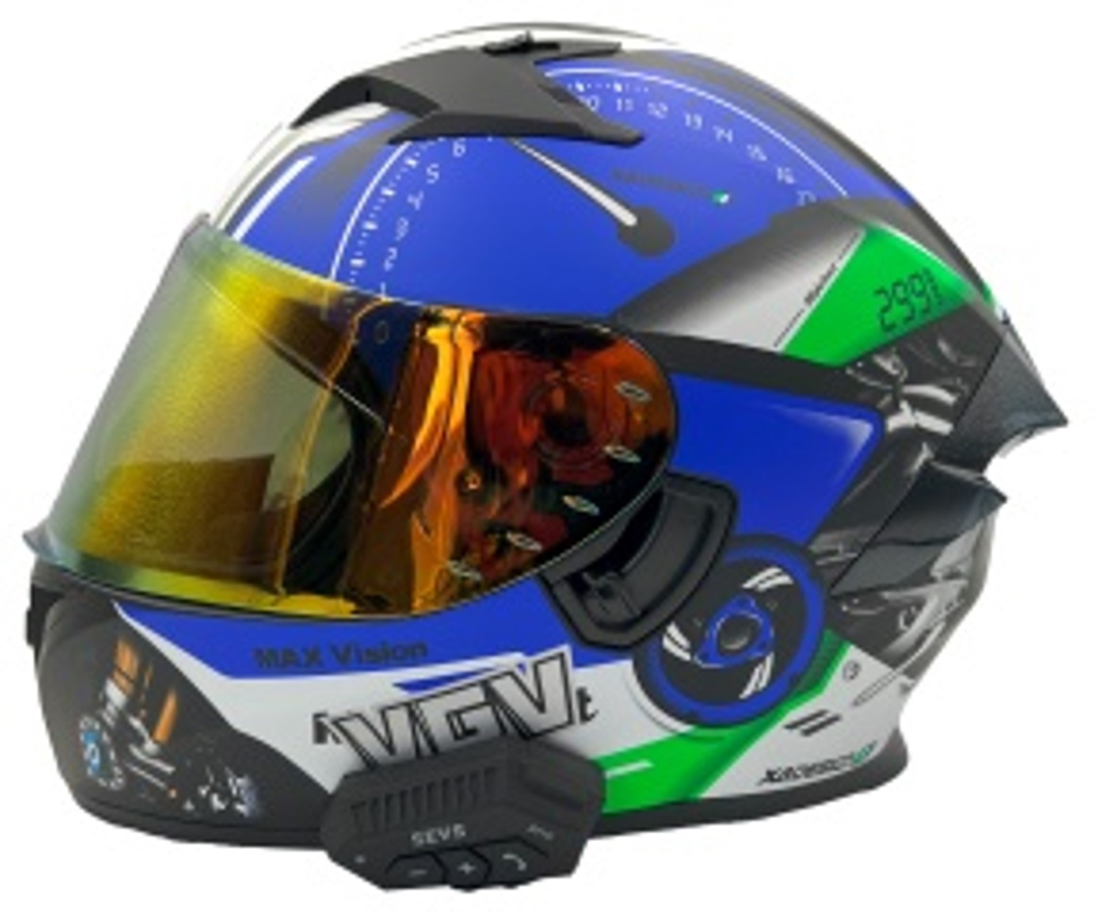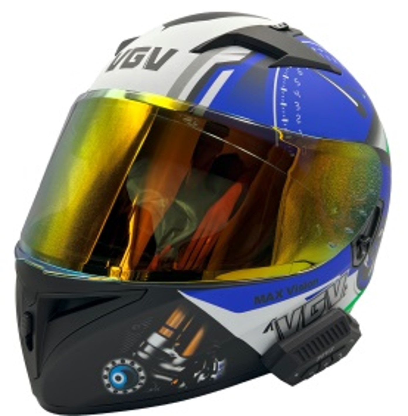 Мото шолом, закритий (M) VGV "1029-38" синьо-білий матовий, (Вмонтований Bluetooth Наушники та мікрофон) вмонтовані окуляраи