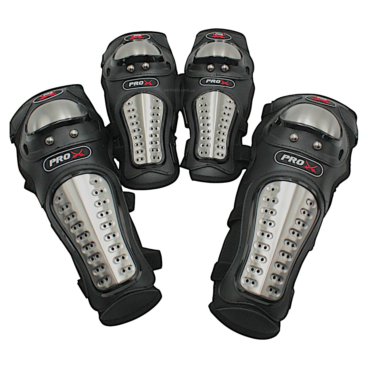 Мотозахист наколінники + налокітники "PRO X" P01, сталь, хром