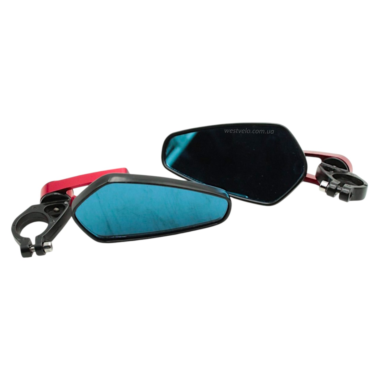 Дзеркало заднього виду, в руль, алюміній, стрілоподібні D13/17' CUSTOM' червоні