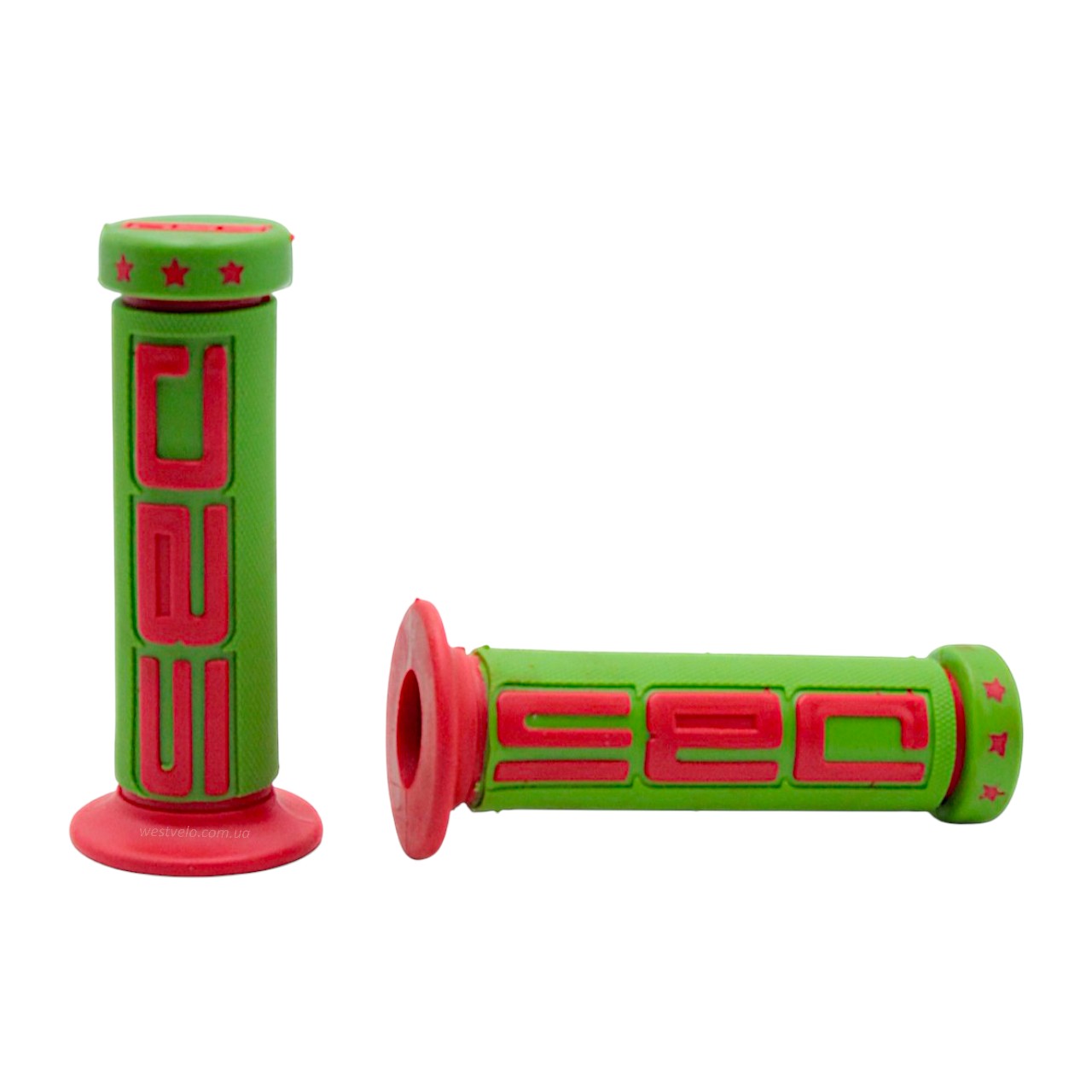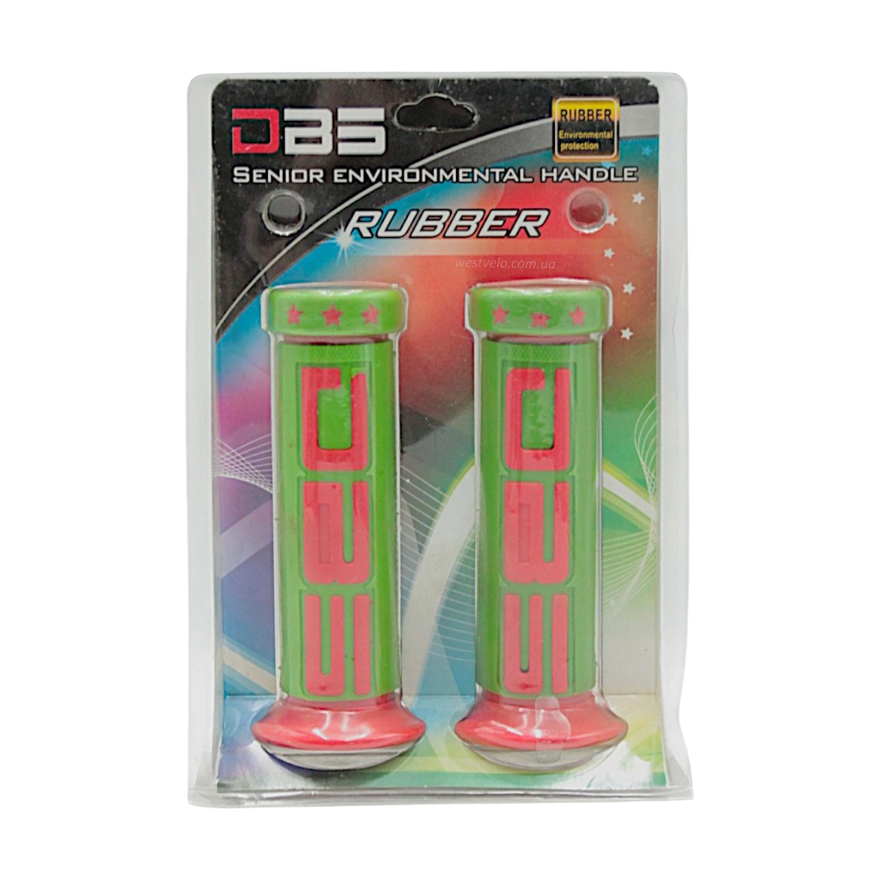 Мото гріпси DBS (Rubber) (зелено-червоні) гумові з буртиком