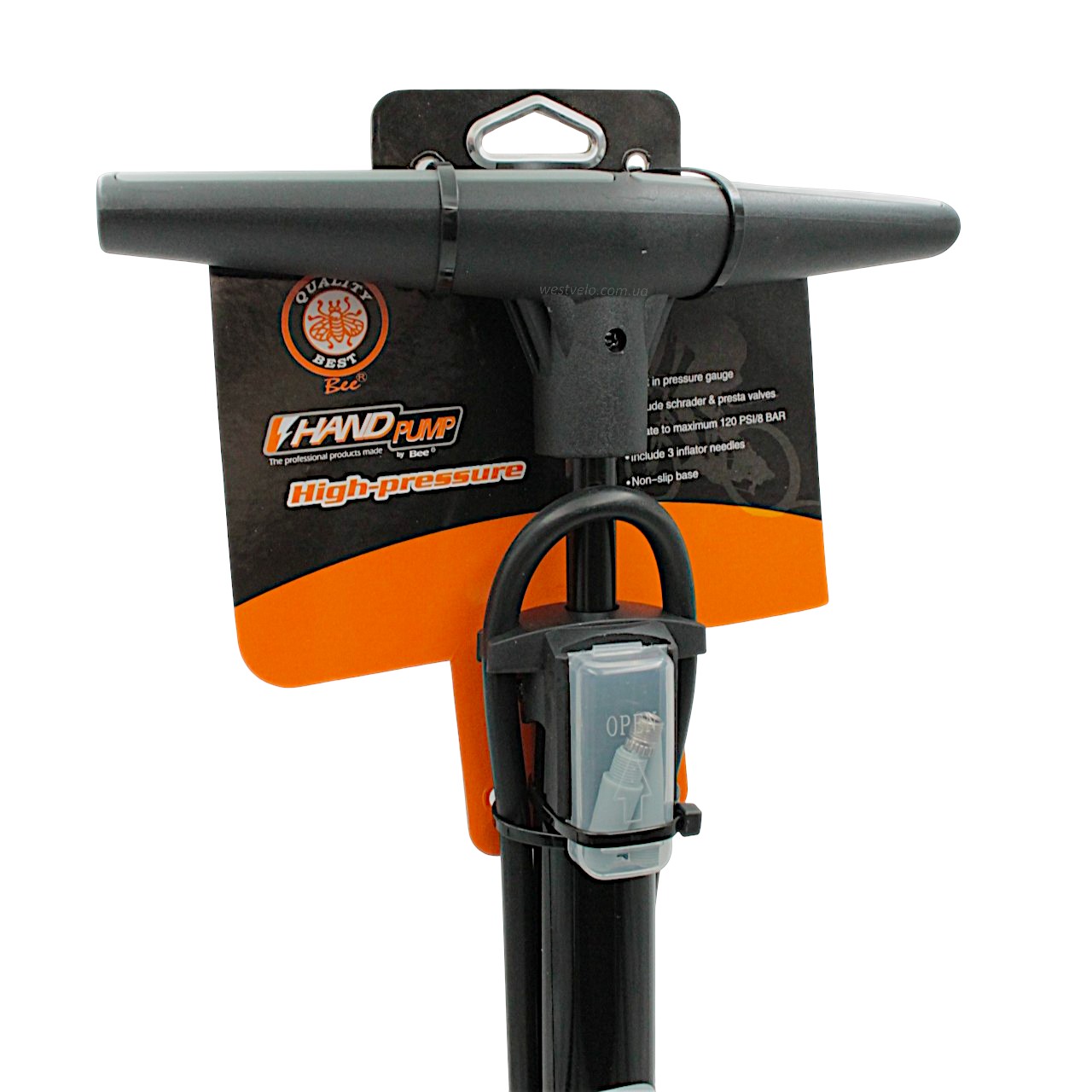 Насос авто з манометром BEE pump (ZF-042) сталевий чорний, 2-ний наконечник (AV/FV)