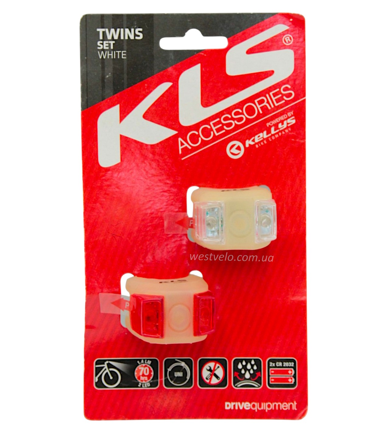 Мигалки на батарейках силікон (перед + зад) KLS Twins (2хCR 2032) білий