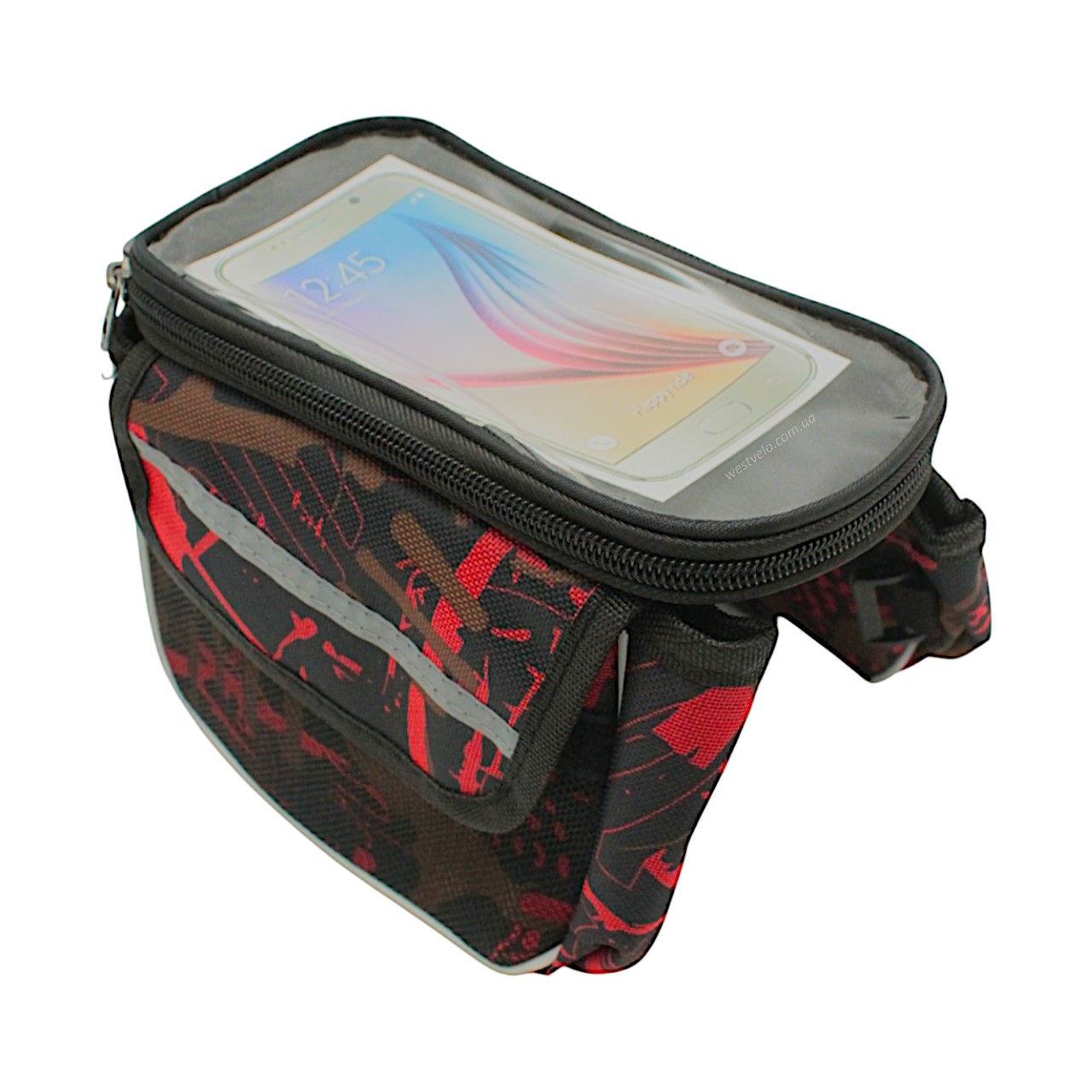 Сумка на раму 2x-стороння + місце для телефону чорно-червона AQE-005