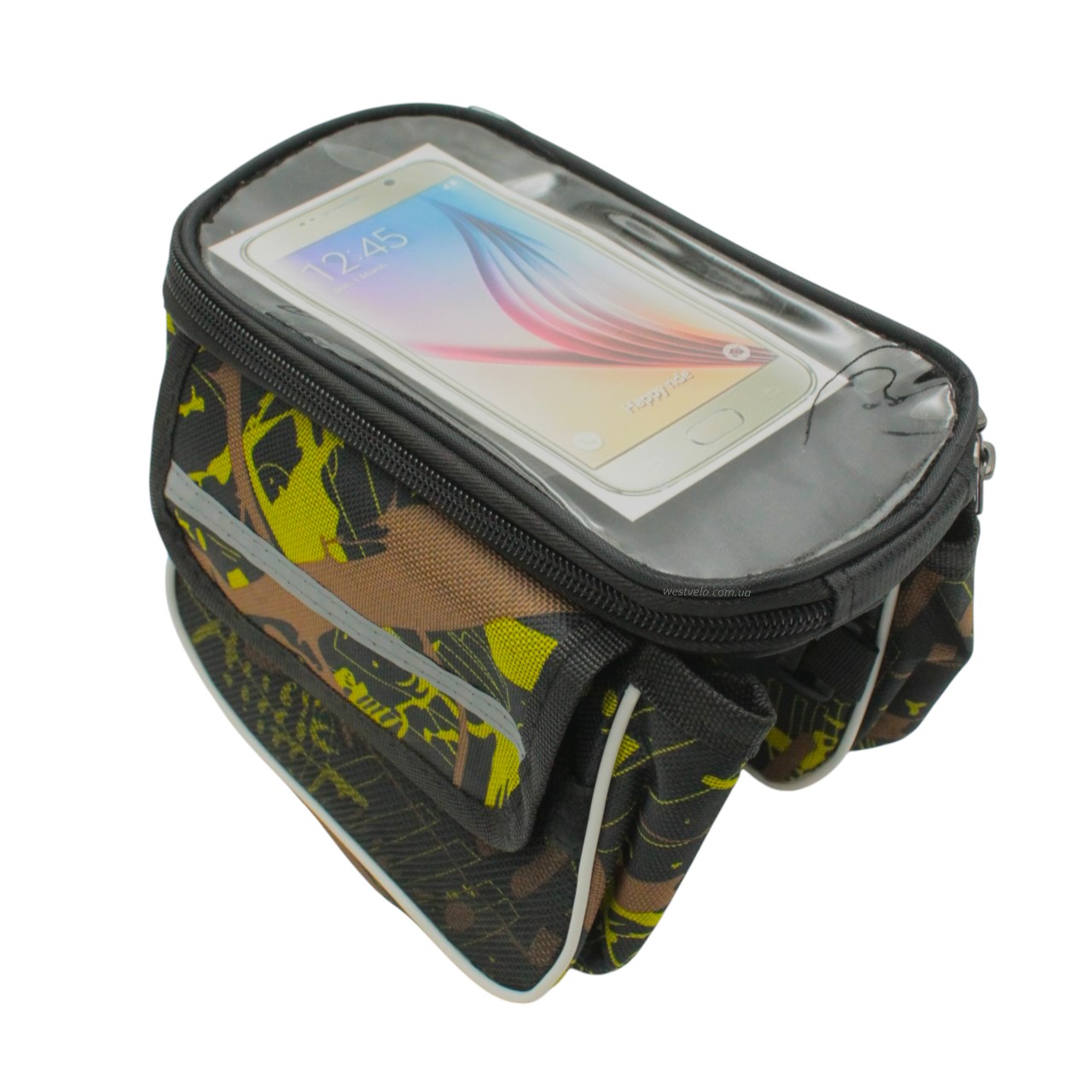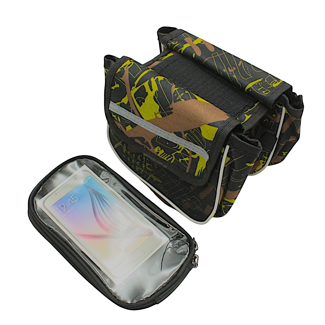 Сумка на раму 2x-стороння + місце для телефону чорно-зелене AQE-005