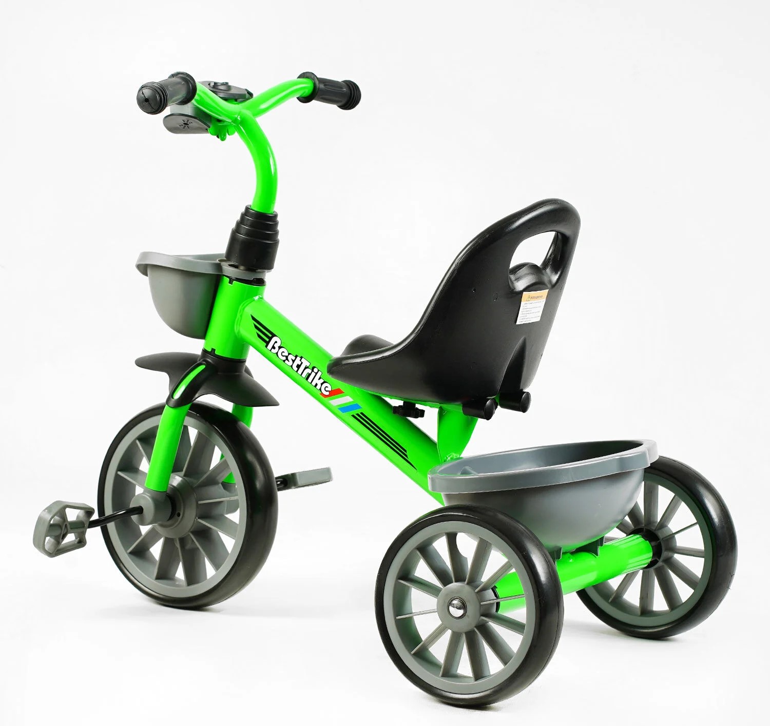 Дитячий велосипед 3-х колісний EVA (піна) Best Trike колеса 12-10, BS-14640 салатово-сірий, сталева рама, фара з музикою та світлом, 1 пісня українською та 2 англійською, 2 кошики