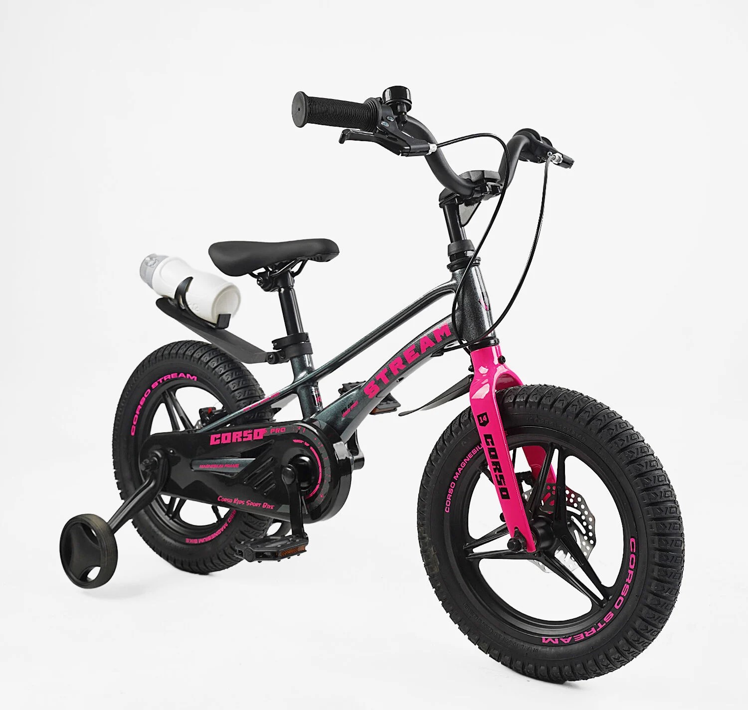 Дитячий велосипед 14 MG Corso «STREAM» SM-14154, магнієва рама, сіро-рожевий